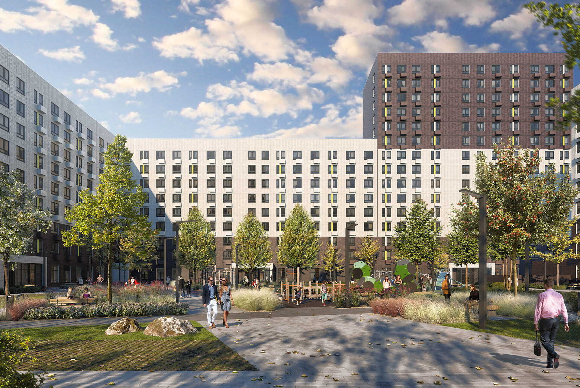 В зелёных дворах-парках, свободных от автомобилей, обустраиваются детские и спортивные площадки, а также места для отдыха. Главная достопримечательность комплекса — детская игровая площадка «Оригами» с ручьём, горкой-трубой и рельефными холмами. В десяти минутах езды от проекта находится Ульяновское лесничество, торговые центры «Румянцево», «Николин парк» и МЕГА Тёплый Стан. До нового торгово-развлекательного центра «Саларис» удобно добраться пешком, прогулка займёт десять минут.