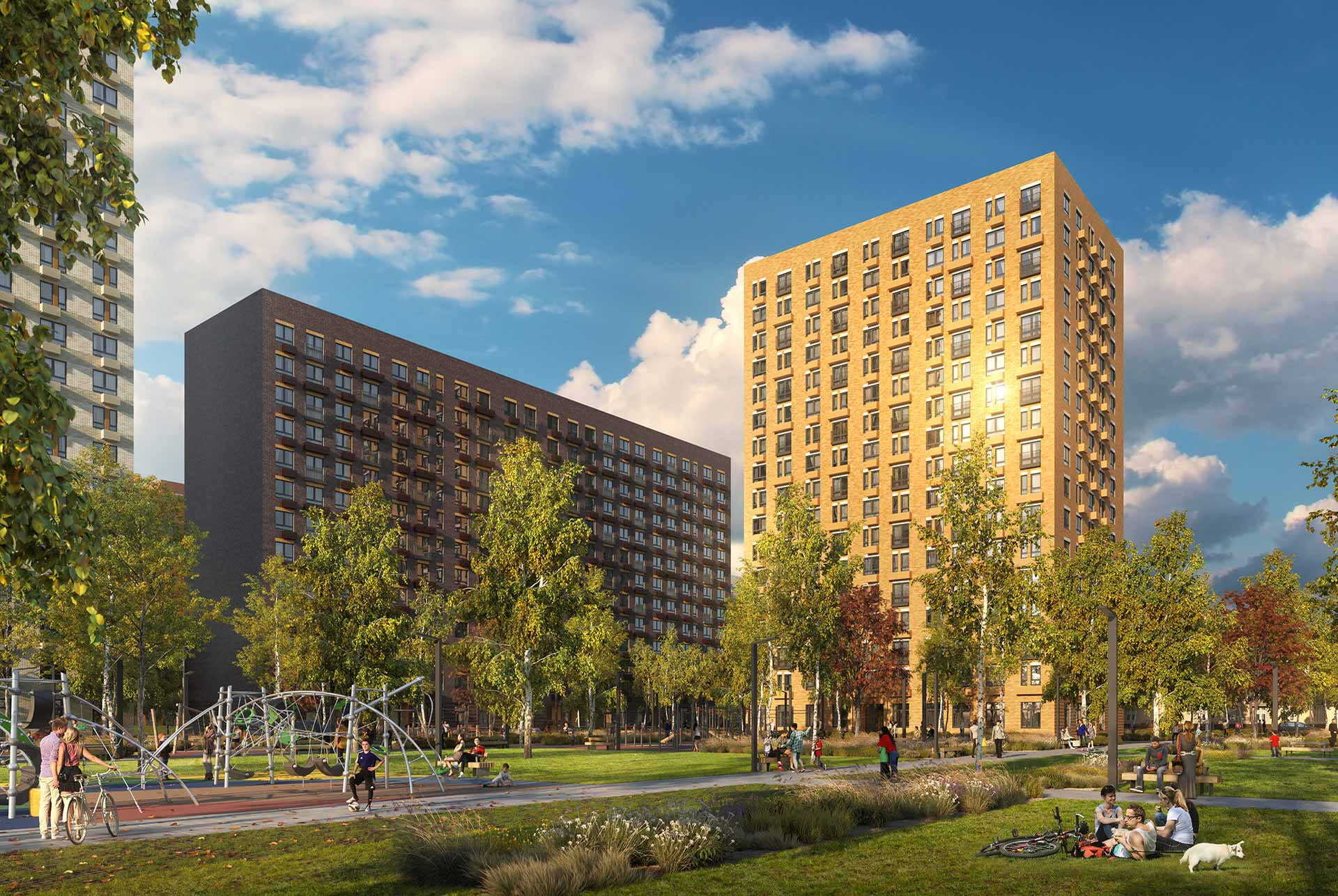В проект входят шесть жилых домов, два детских сада и подземные паркинги. В подземной части корпусов предусмотрены индивидуальные кладовые с прямым доступом на лифте, которые помогут освободить квартиру от сезонных и крупногабаритных вещей.
