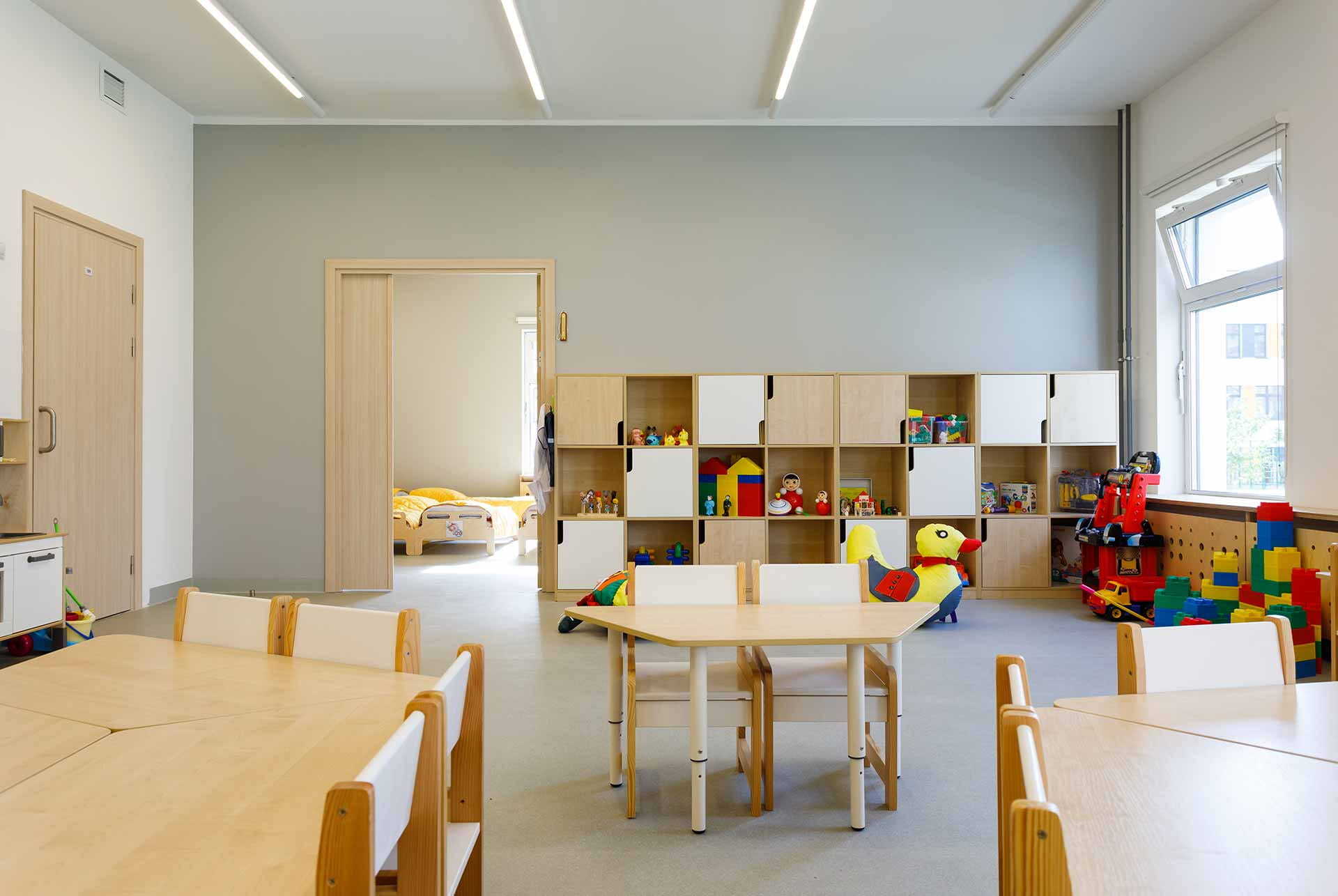 Трёхэтажное здание спроектировано с особым вниманием к гармоничному развитию малышей — физическому и психологическому. На площади более 2600 м2 расположены шесть групп, в каждой из которых есть раздевалка, просторная игровая, спальня, туалетные комнаты. В спортивных и музыкальных залах будут проходить занятия по физкультуре, вокалу и хореографии. На благоустроенной территории обустроены площадки для игр на свежем воздухе с теневыми навесами и современным оборудованием.