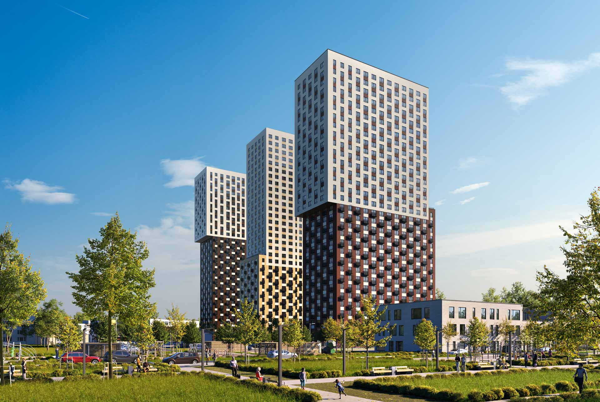 Высота строящегося корпуса — 32 этажа. В доме будут просторные и светлые подъезды, расположенные на уровне земли, с выходами во двор и на улицу. На подземном этаже предусмотрены индивидуальные кладовые. На первом этаже разместятся магазины, кафе и другие сервисы. В зелёном дворе-парке будут оборудованы современные детские и спортивные площадки, обустроены места для отдыха.