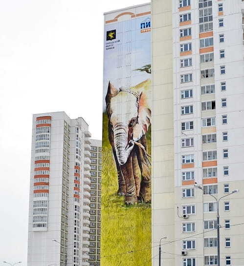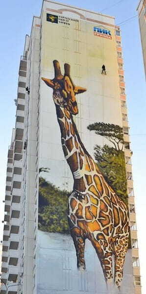 Масштабные изображения на анималистическую тематику нарисовали прославленные художники-граффитисты Ches и Akse. Дом 3/2 украсил рисунок резвящихся зебр, на доме 6/2 поселился жираф, а на доме 9/2 царственно шествует слон. Теперь жители микрорайона смогут любоваться представителями африканской фауны по пути на учебу или работу в любое время года. Данное граффити не только отлично вписывается в архитектуру современного жилого микрорайона, но и придает ему особый, ни с чем не сравнимый облик.
