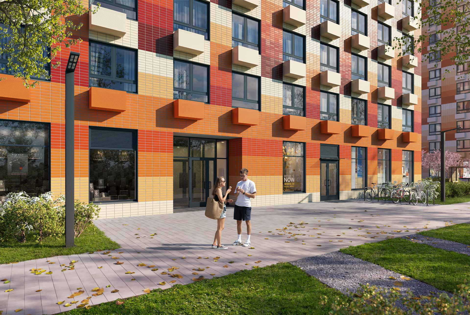 Высота корпуса 1.3 — 19 этажей. В доме будут просторные и светлые подъезды, расположенные на уровне земли, с выходами во двор и на улицу. На первом этаже разместятся магазины, кафе и другие сервисы. На подземных этажах предусмотрены индивидуальные кладовые. В зелёных дворах-парках будут оборудованы современные детские и спортивные площадки, обустроены места для отдыха.