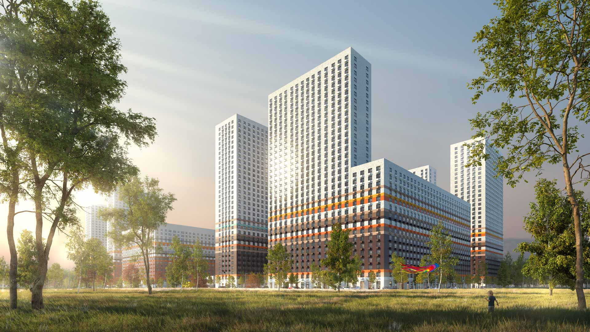 Корпуса 1.1 и 1.4 — дома переменной этажности, высотой 16-33 этажа. Внутри будут просторные и светлые подъезды с высокими потолками, надёжными лифтами и двумя входами: со двора и с улицы. Входы в подъезды расположены на уровне земли, без ступеней и пандусов. На первых этажах разместятся магазины, кафе, салоны красоты и другие сервисы. В зелёных дворах-парках будут оборудованы современные детские площадки и места для отдыха.