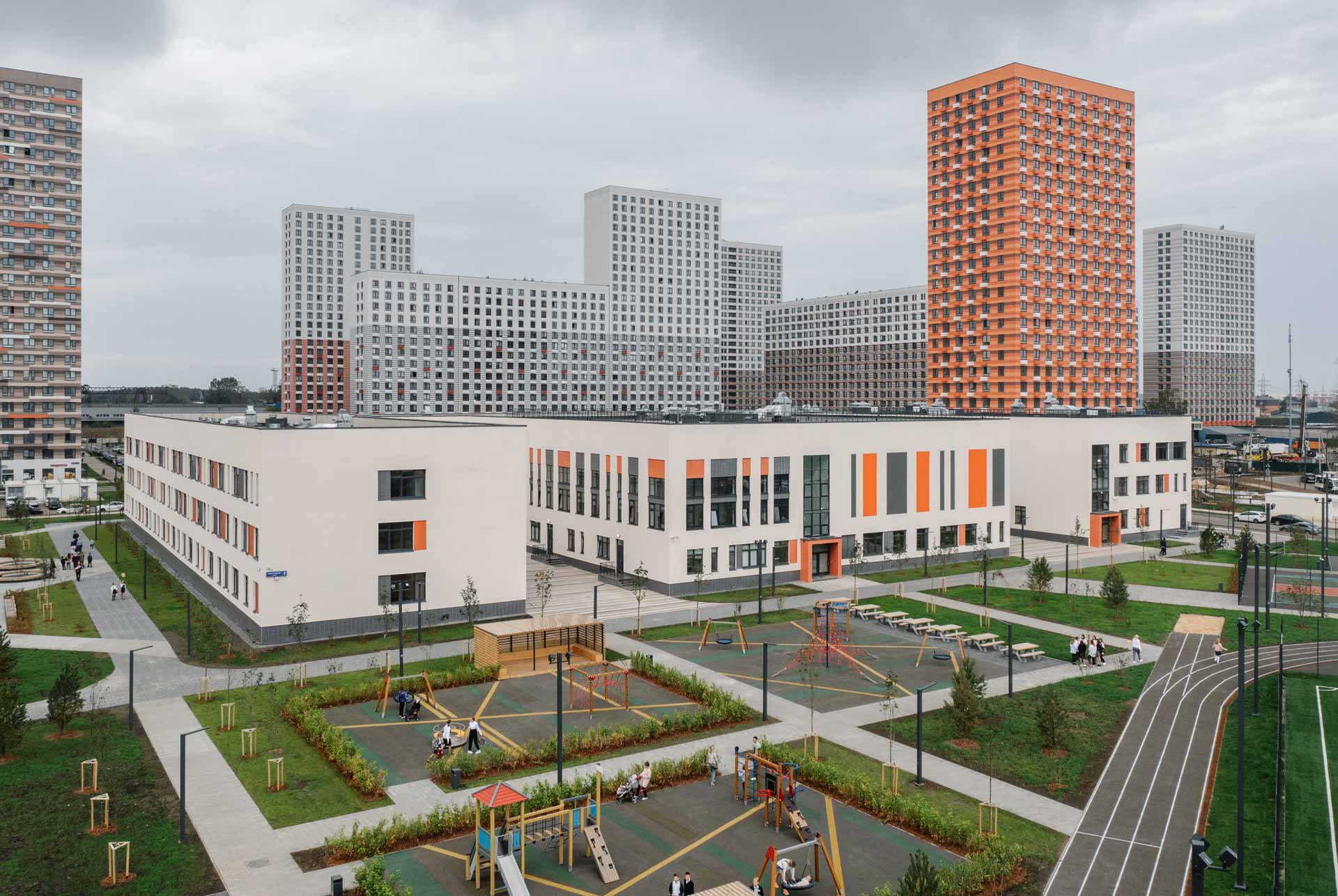 Школа спроектирована и построена по нашим стандартам и учитывает всестороннее развитие детей. В ней дети смогут посещать не только учебные классы, но и дополнительные занятия — для этого предусмотрены методические кабинеты, лабораторные и кружковые комнаты, библиотека и медиатека с интерактивным оборудованием. На территории школы также есть детские игровые и спортивные площадки и места для тихого отдыха. Мы уверены, дети будут ходить в нашу школу с удовольствием