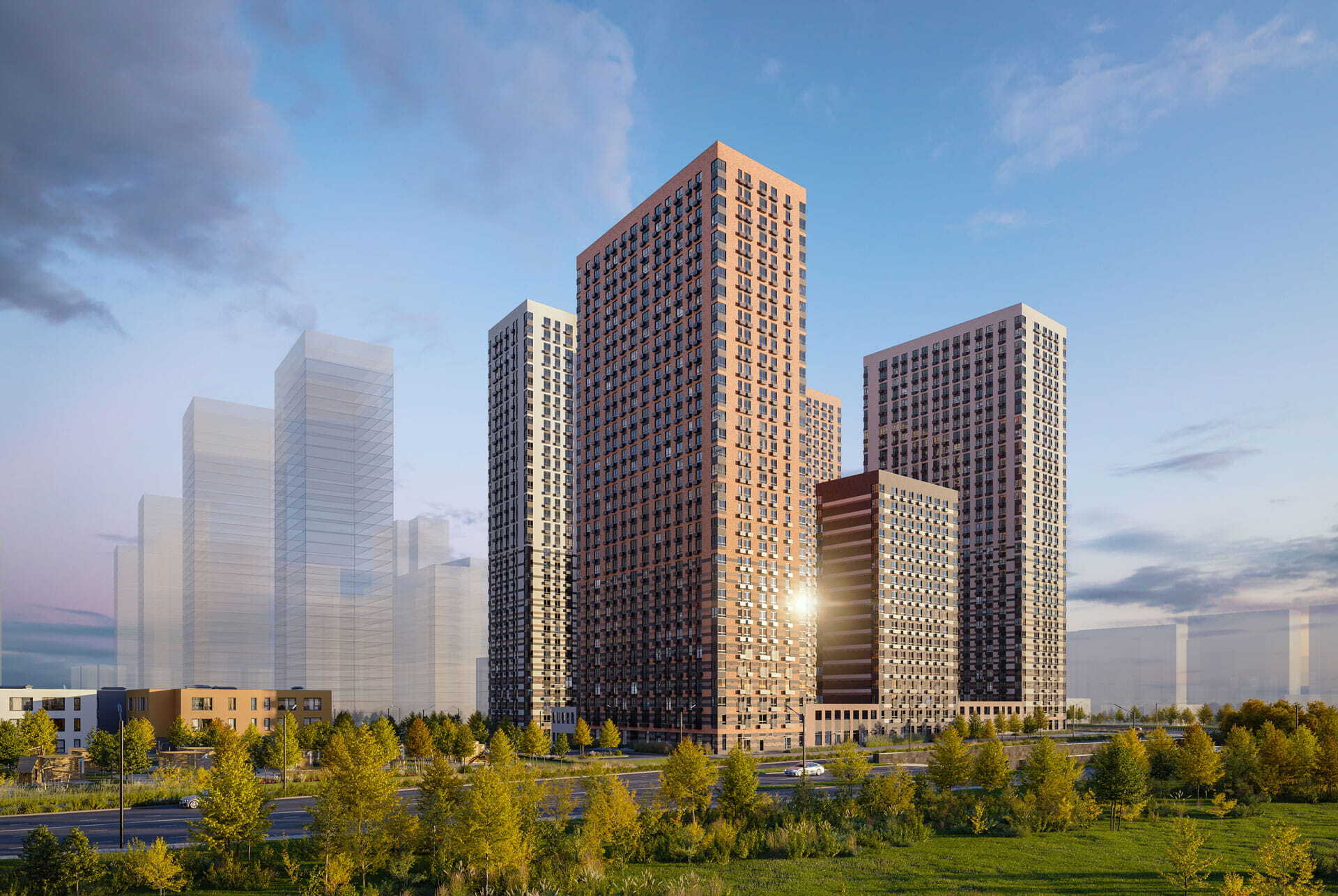 Высота корпусов — 17–33 этажа. В домах будут просторные и светлые подъезды на уровне земли с выходами во двор и на улицу. На первом этаже разместятся магазины, кафе и другие сервисы. На подземном этаже предусмотрены индивидуальные кладовые и паркинги.