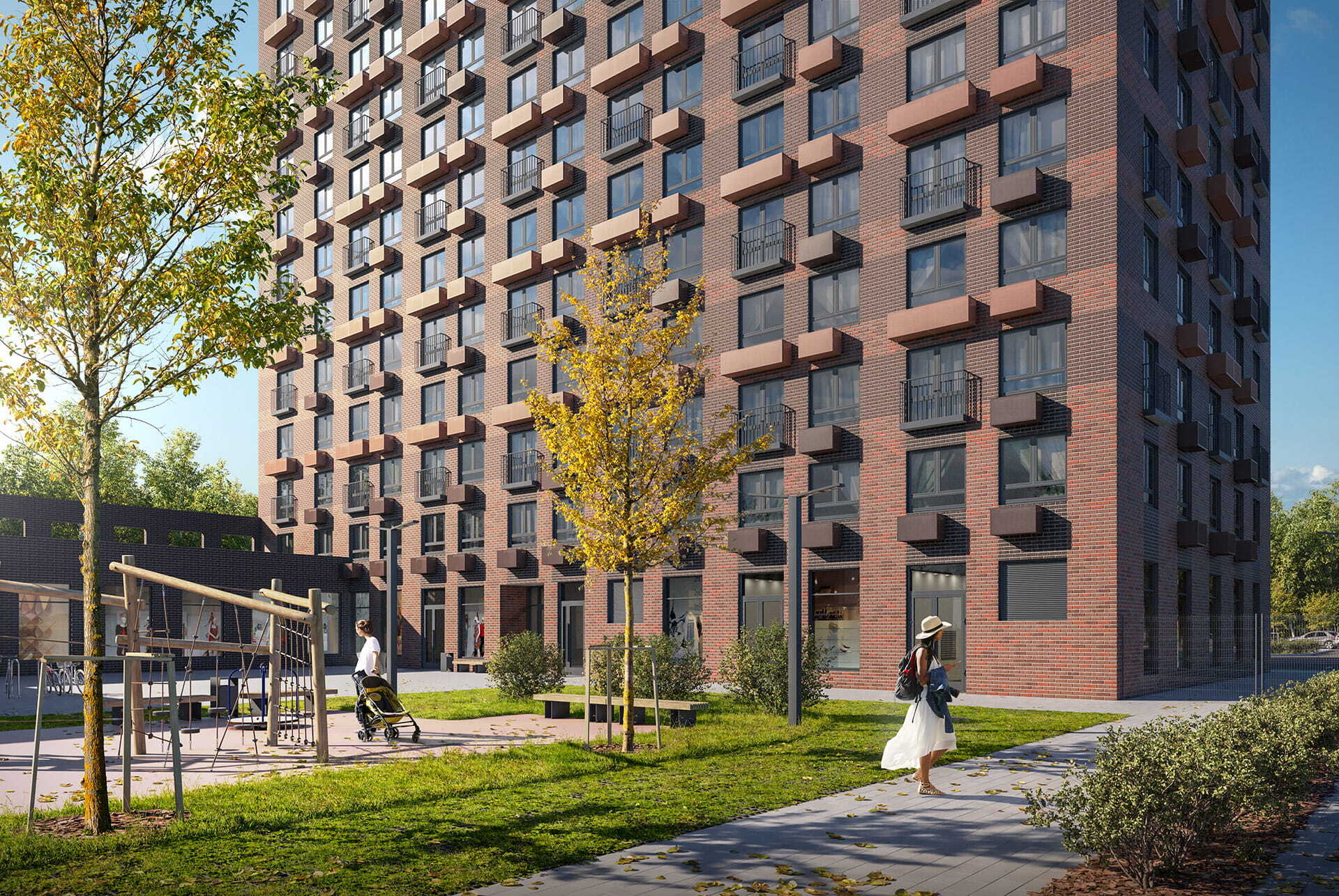 Высота корпуса — 38 этажей. В доме будут просторные и светлые подъезды на уровне земли с выходами во двор и на улицу. На первом этаже разместятся магазины, кафе и другие сервисы. На подземных этажах предусмотрены индивидуальные кладовые.