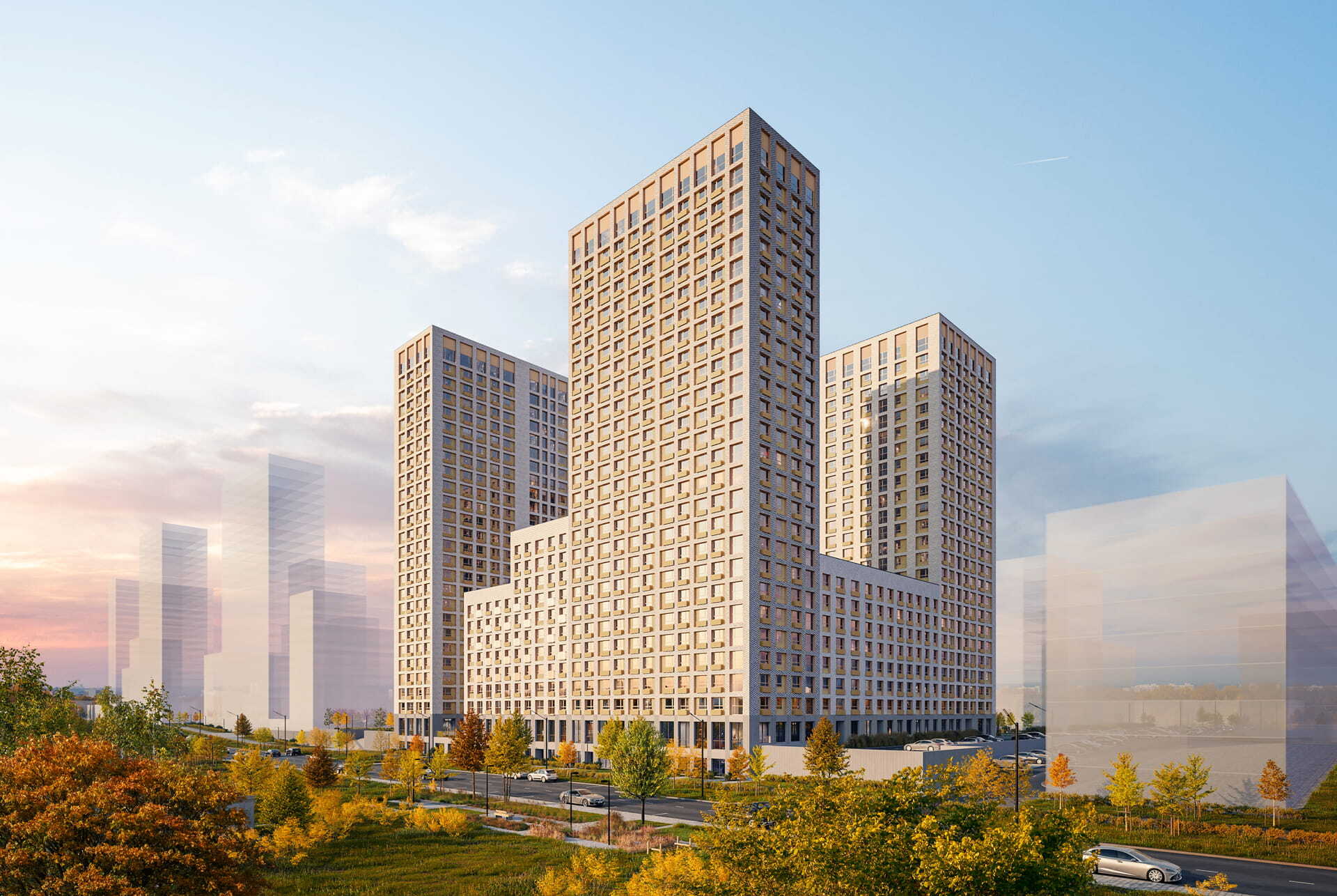 У корпусов переменная высота — от 7 до 26 этажей: благодаря такой архитектуре естественный свет беспрепятственно попадает в квартиры и дворы. В доме будут просторные и светлые подъезды на уровне земли с выходами во двор и на улицу.