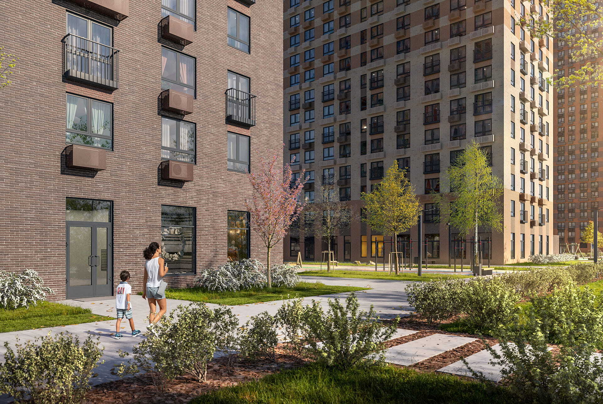 На первых этажах откроются кафе, магазины и полезные сервисы. В уютных дворах-парках есть места для отдыха, детские и спортивные площадки. Для автомобилей предусмотрен подземный двухуровневый паркинг.