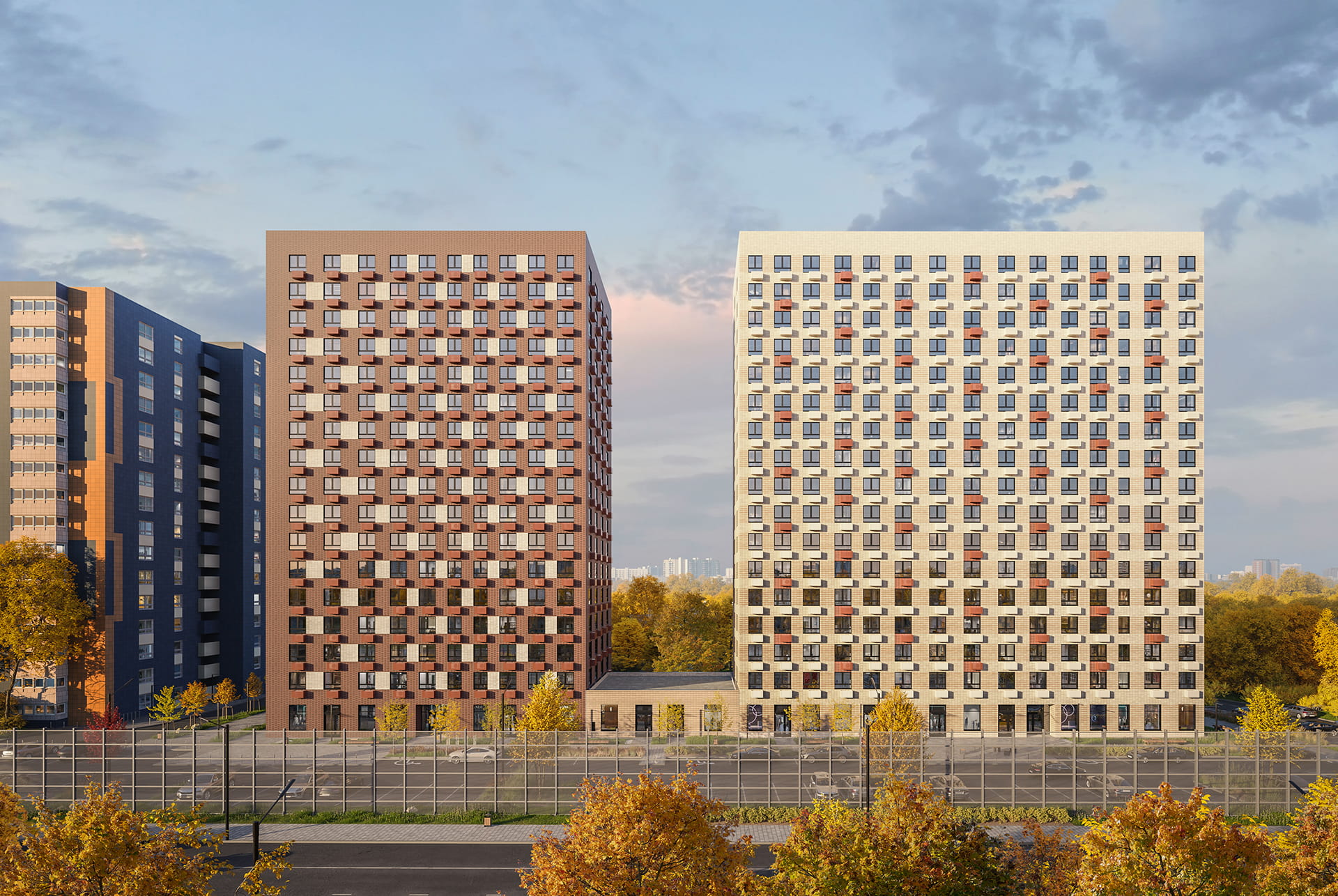 В жилом квартале 3 корпуса. Высота каждого дома — 17 этажей.