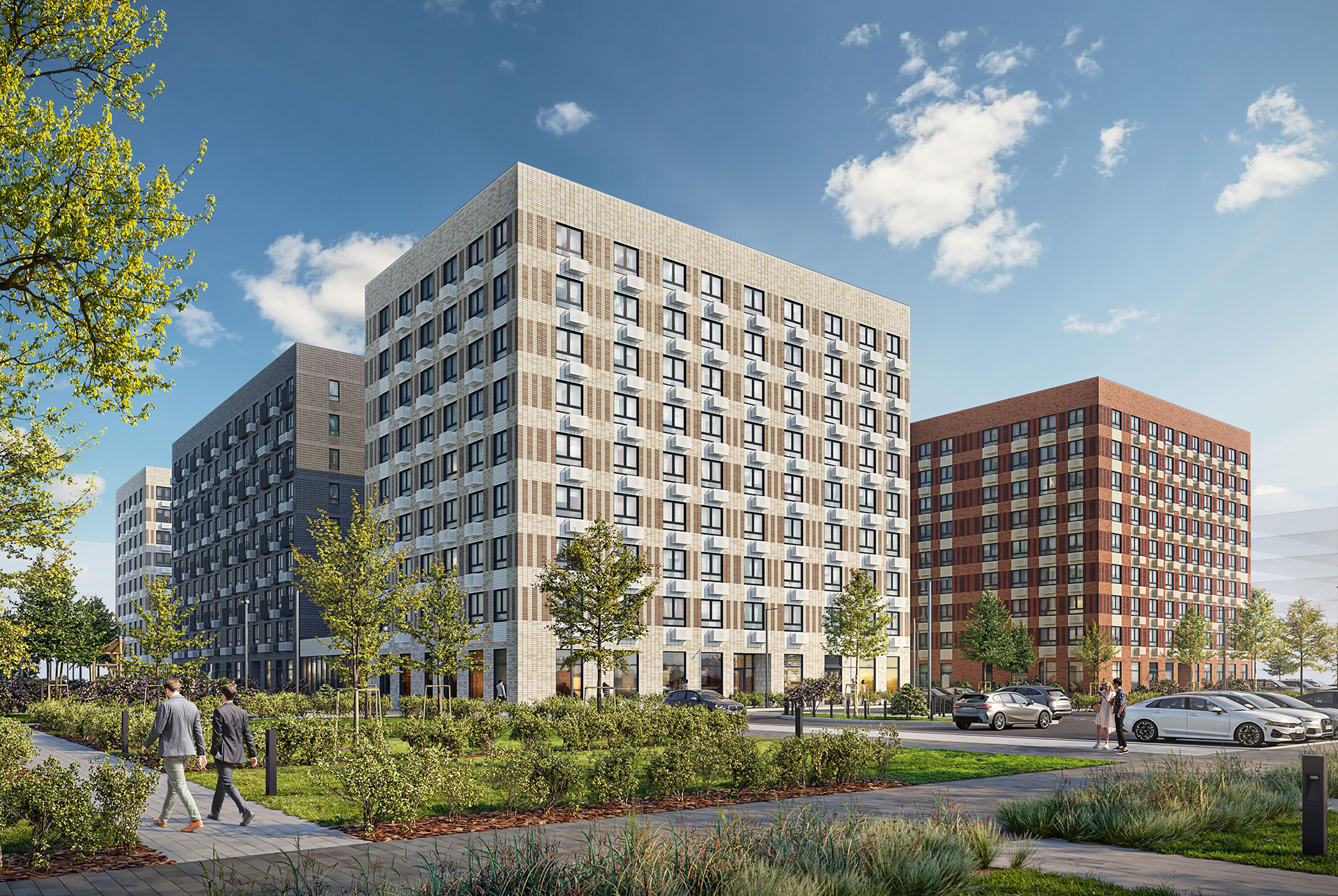 В проекте уютные парки во дворе каждого дома — с местами для спокойного отдыха, спортивными и детскими площадками. На первых этажах уже работают кафе, магазины и полезные сервисы для комфортной жизни.