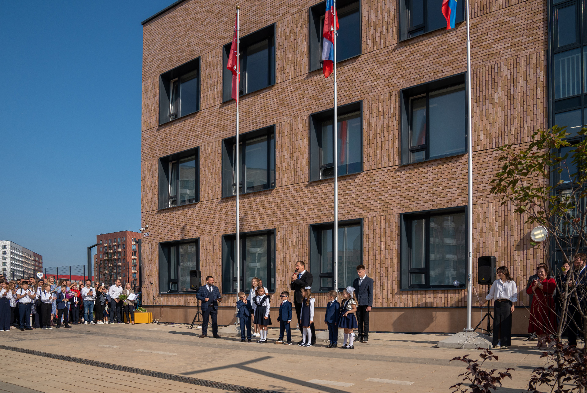 В «Ильинских лугах» открылась первая из четырёх запланированных в проекте школ для 1500 учеников. Кроме универсальных классов, в ней есть кабинеты иностранного языка и информатики, музыки и рисования, биологии, физики и химии, кулинарии и мастерские по обработке дерева и тканей, а также группы продлённого дня.