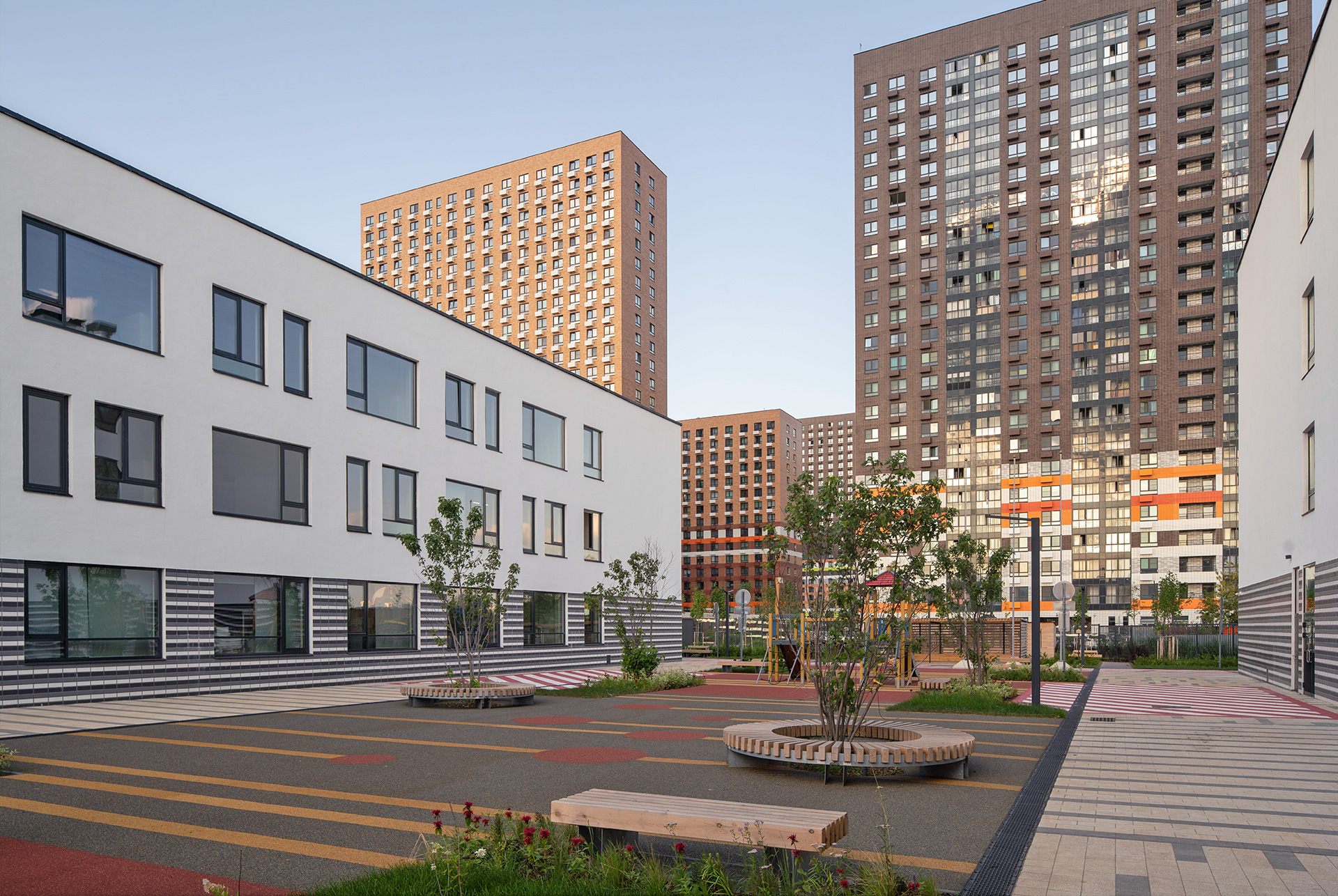 Мы уверены, дети будут ходить в новую школу с удовольствием — а красивые фасады, продуманные интерьеры и благоустроенная территория с пространством для спорта и игр будут способствовать их гармоничному развитию.