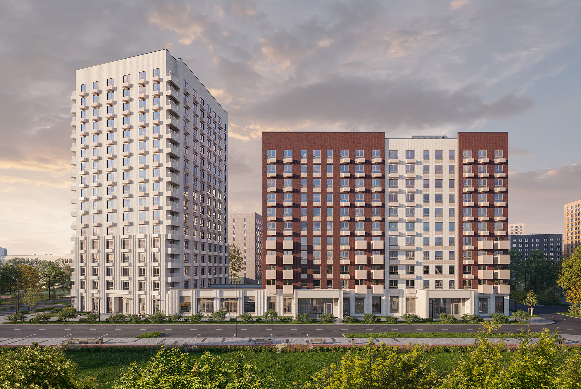 На первых этажах «Никольских лугов» откроются магазины и полезные сервисы. В каждом дворе появятся детские и спортивные площадки, через весь район протянутся несколько пешеходных бульваров.