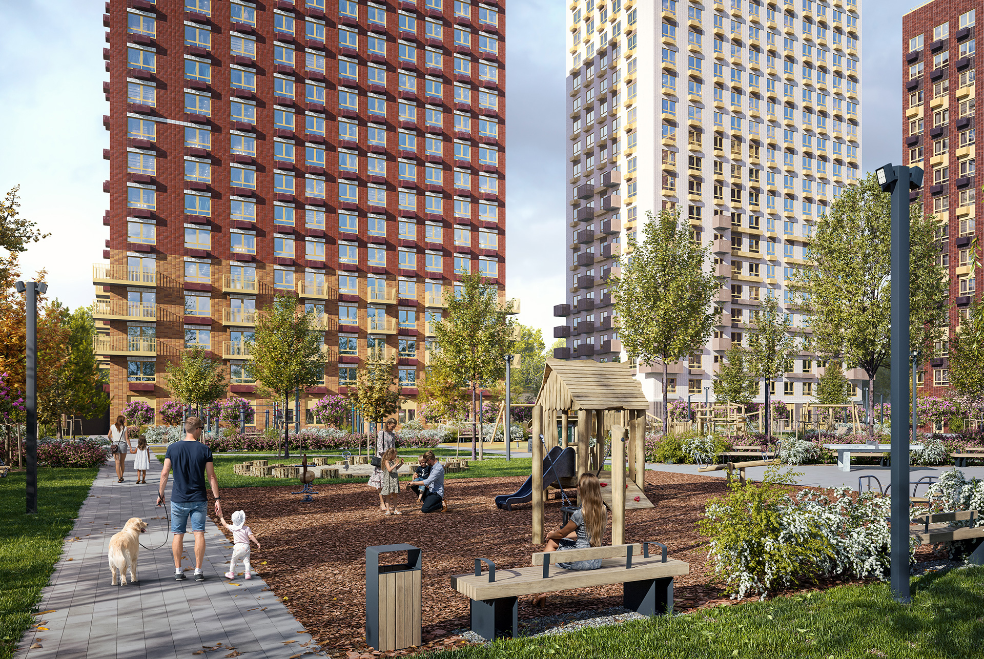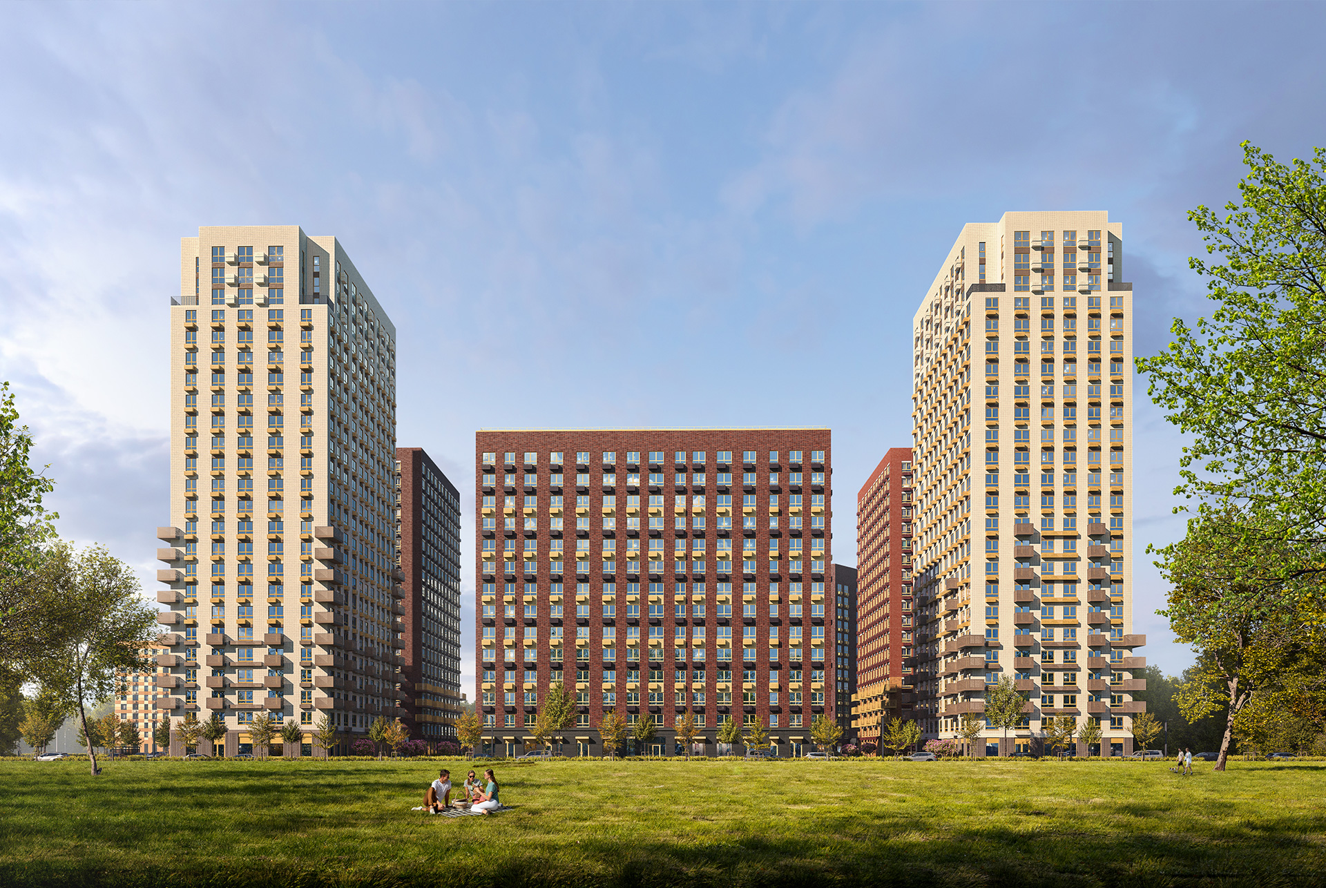 Высота новых корпусов — 14 и 24 этажа. Благодаря переменной этажности и расстоянию между домами, в квартиры попадает больше естественного света. Фасады природных цветов мы дополним разными рельефными элементами: множество деталей в отделке сделает дома узнаваемыми, а пространство вокруг первых этажей — уютным.