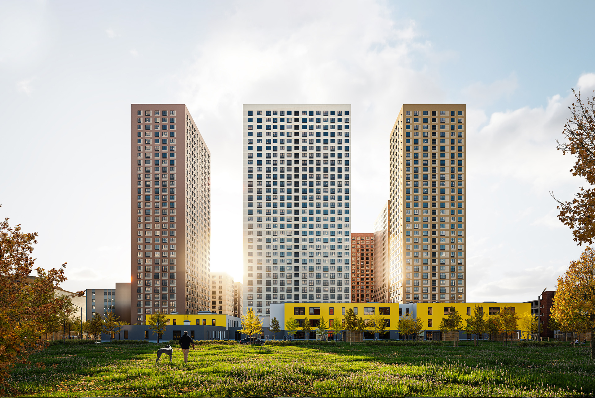 На территории квартала появится приватный парк с Wi-Fi. Светлые и просторные лобби будут оформлены по дизайн-проекту. Первые этажи домов займут магазины, кафе и полезные сервисы. Кроме того, в проекте предусмотрен свой образовательный центр с детским садом и начальной школой.