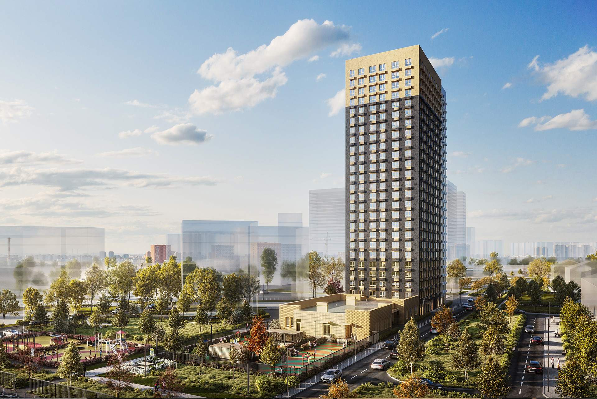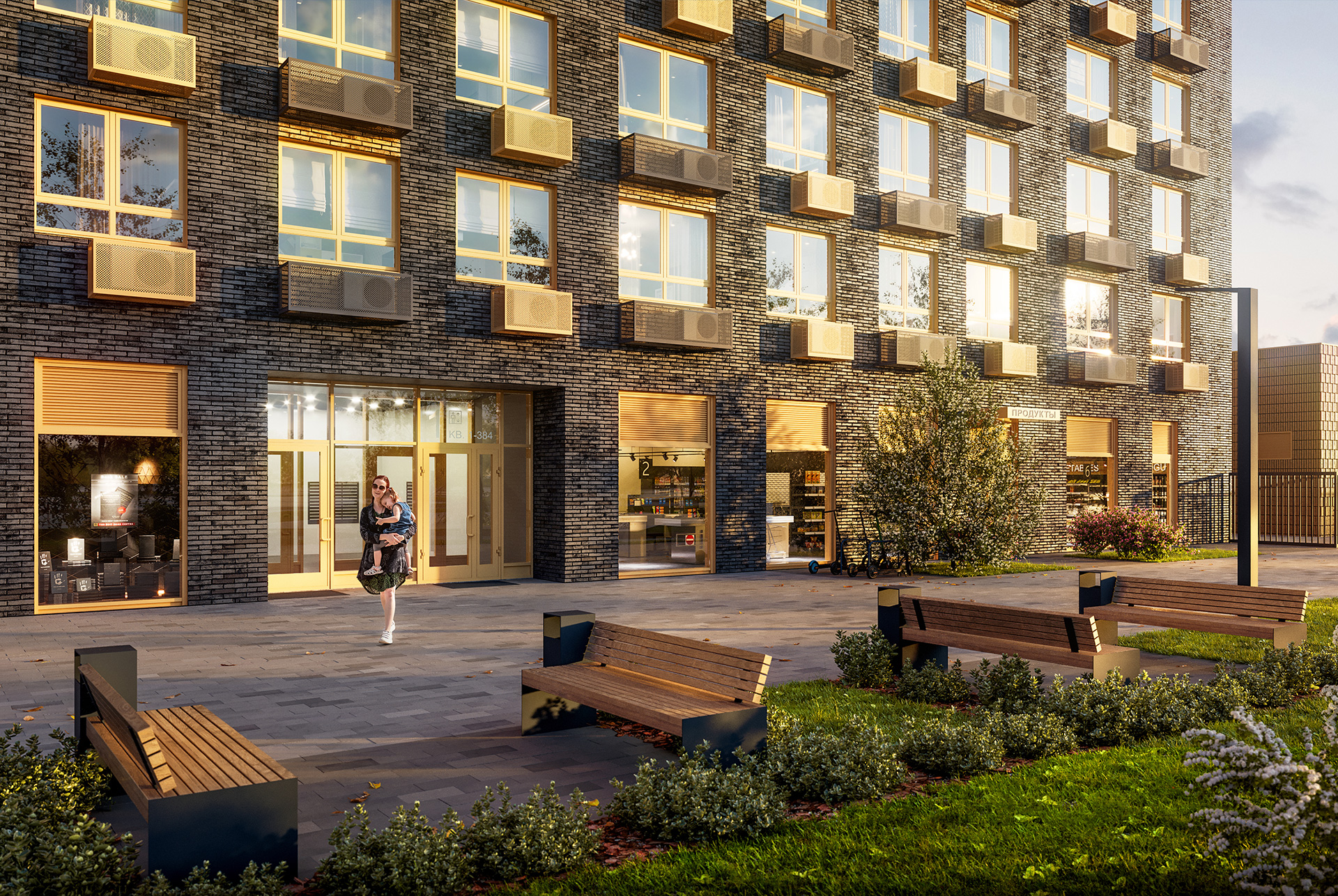 На первом этаже корпуса разместятся магазины, кафе, аптеки и другие полезные сервисы. На подземном этаже предусмотрены вместительные кладовые.