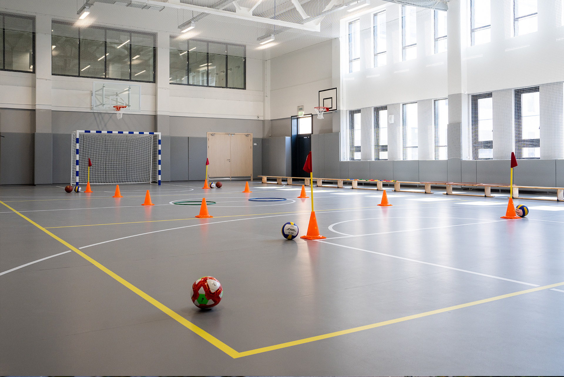 Как и в других школах ПИК, отделка будет выполнена в светлых нейтральных тонах, чтобы дети меньше отвлекались и лучше концентрировались на учёбе. Все входы в школу расположим на уровне земли, без порогов и ступеней — так удобнее для всех, в том числе для маломобильных групп населения.