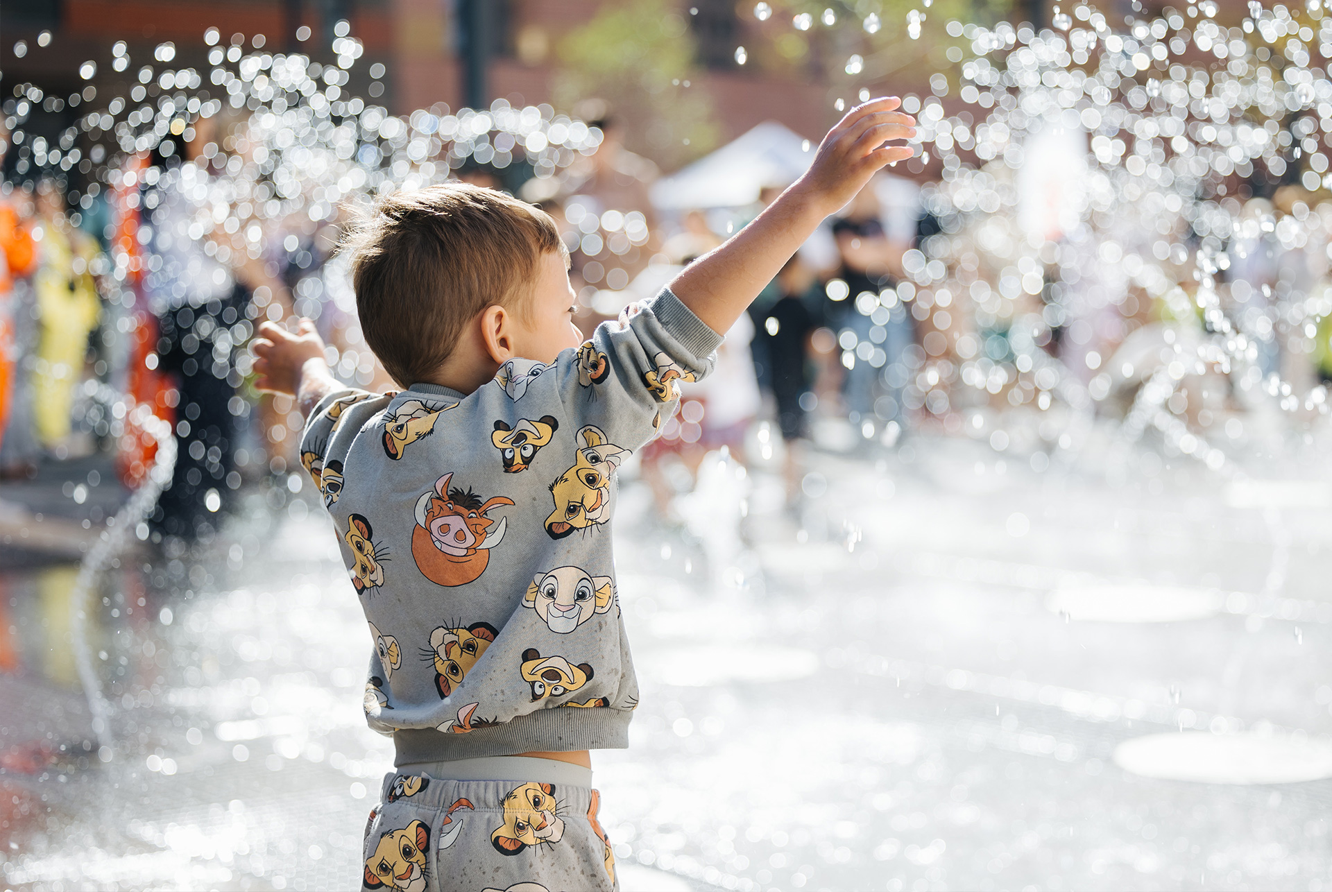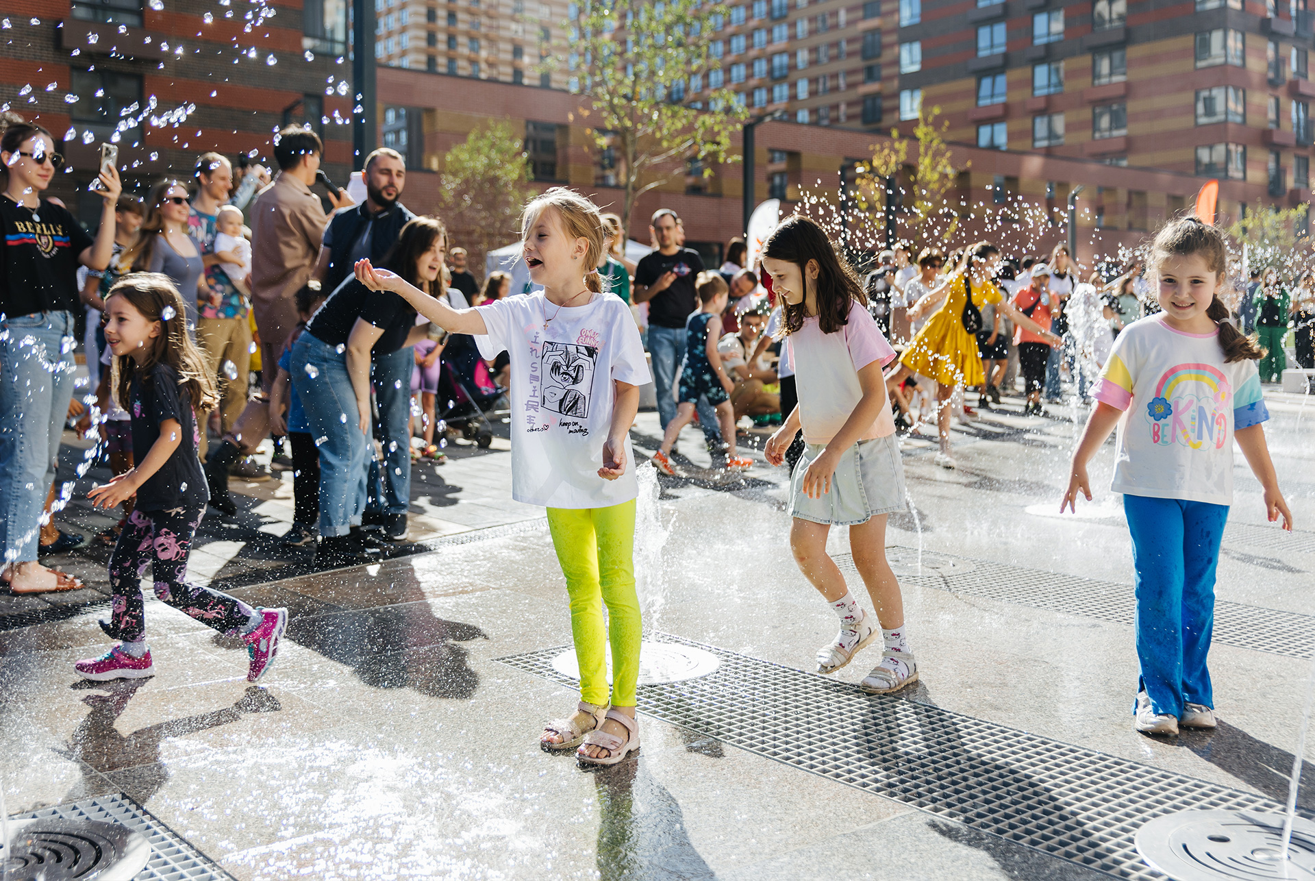 Местом притяжения на новом бульваре стал сухой фонтан. У него нет традиционной чаши — струи воды бьют прямо из тротуара. Вместе они создают разные водные эффекты: бегущие волны, фейерверки, выстрелы, взрывы. В вечернее время фонтан подсвечивается разноцветными огнями.