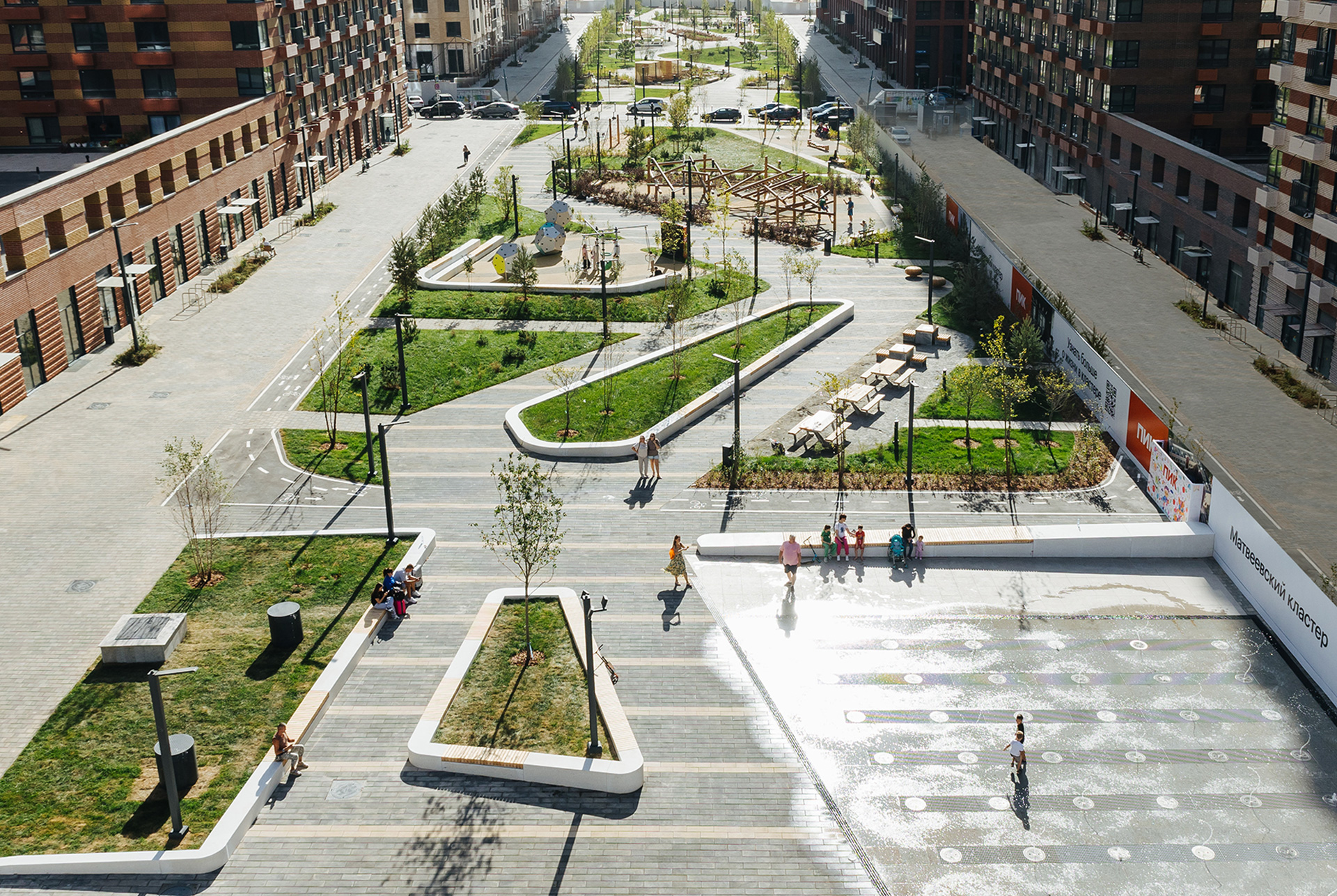 В Матвеевском кластере в Москве, который объединил четыре жилых квартала ПИК, открыли пешеходный бульвар и фонтан с ночной подсветкой. Новое пространство по проекту британского бюро Gillespies станет прекрасным местом для отдыха и активного времяпрепровождения всей семьи.