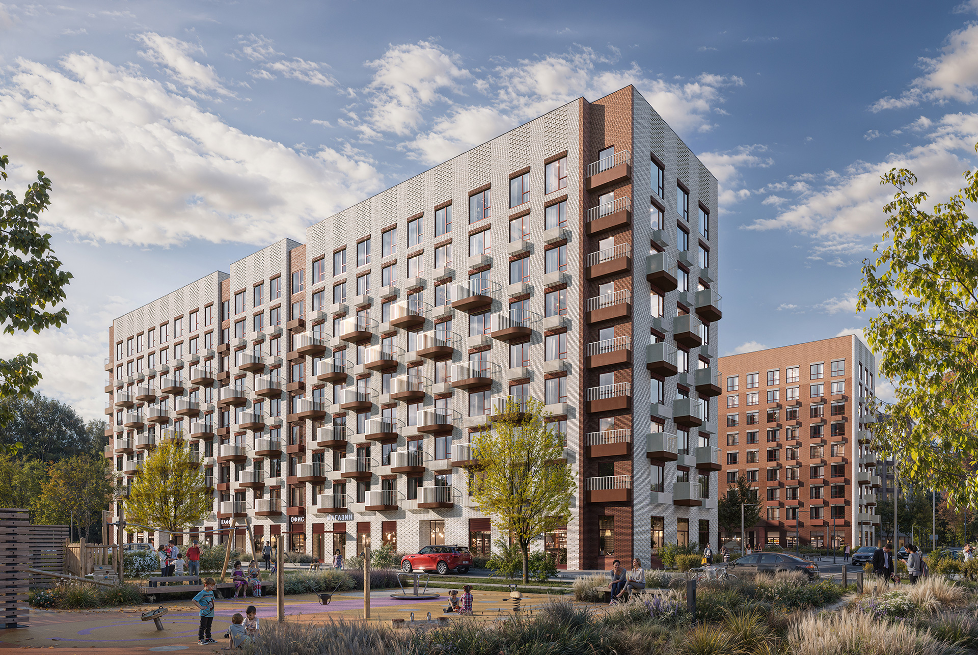 Через весь квартал протянется пешеходный бульвар, где будет приятно гулять или устроить пробежку. Уже открыт PlayHub «Гравити» — современное игровое пространство с холмами, зонами для игр и отдыха жителей всех возрастов.