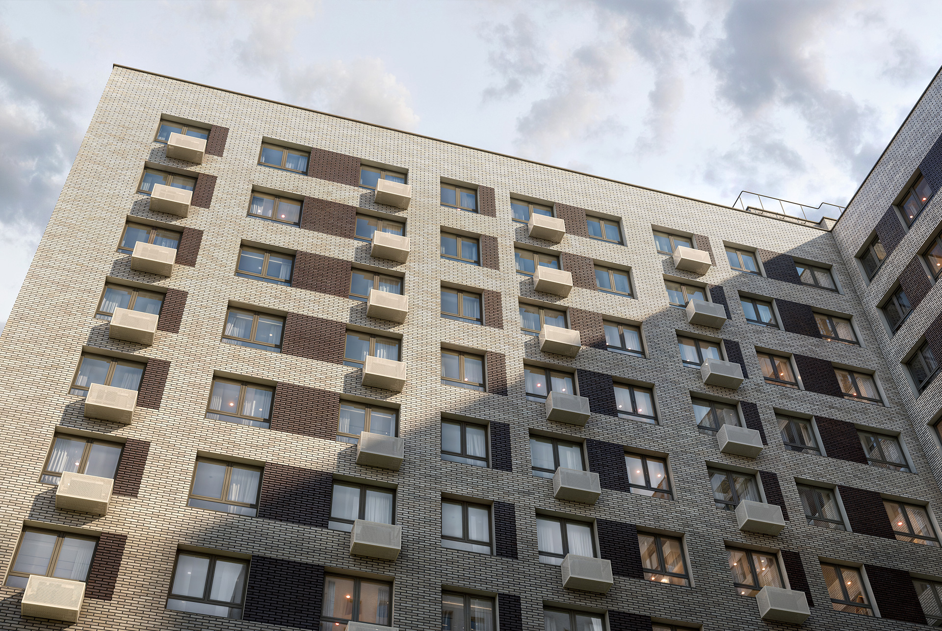 Высота нового корпуса — 9 этажей. Здесь продумано всё для удобства жителей. Увеличенные окна придают фасадам современный вид, а ещё будут пропускать больше солнечного света в квартиры и визуально увеличат пространство. На первых этажах расположатся уютные лобби с современными лифтами и двумя входами на обе стороны здания, а также откроются магазины, кафе и полезные сервисы.