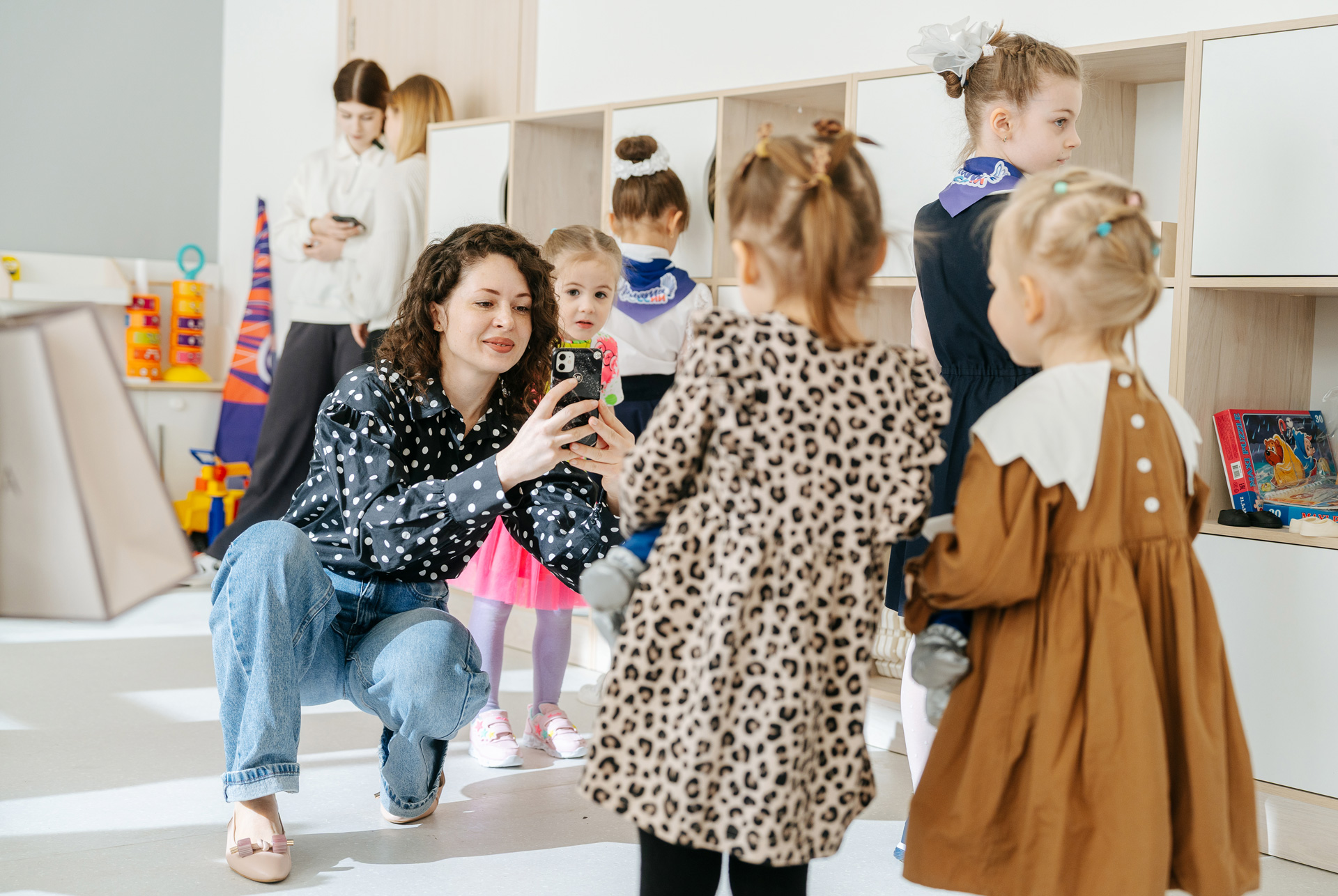Дизайн интерьера создан с особой заботой о малышах. Стены оформлены тактильно приятными материалами разных фактур и форм, которые стимулируют детское любопытство и творческие способности. Цветовая гамма подобрана так, чтобы не отвлекать внимание малышей от игр и занятий.