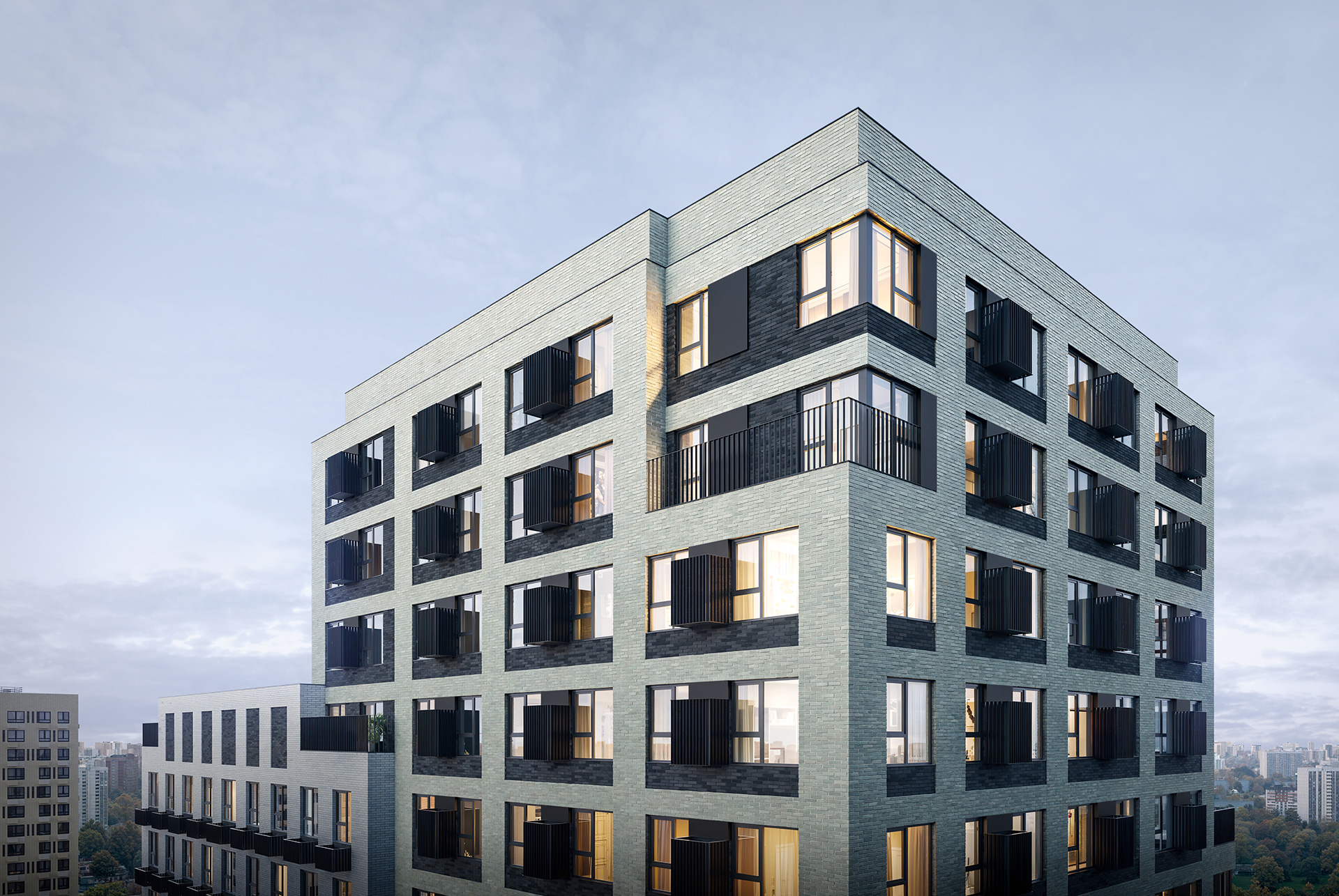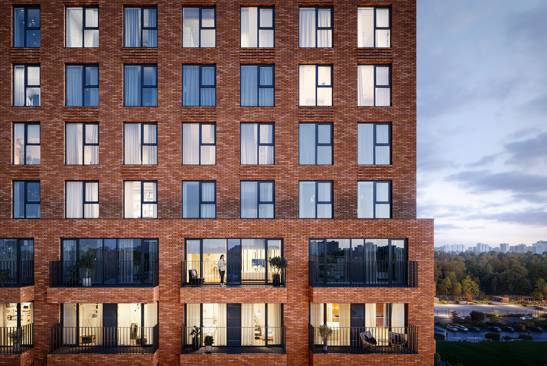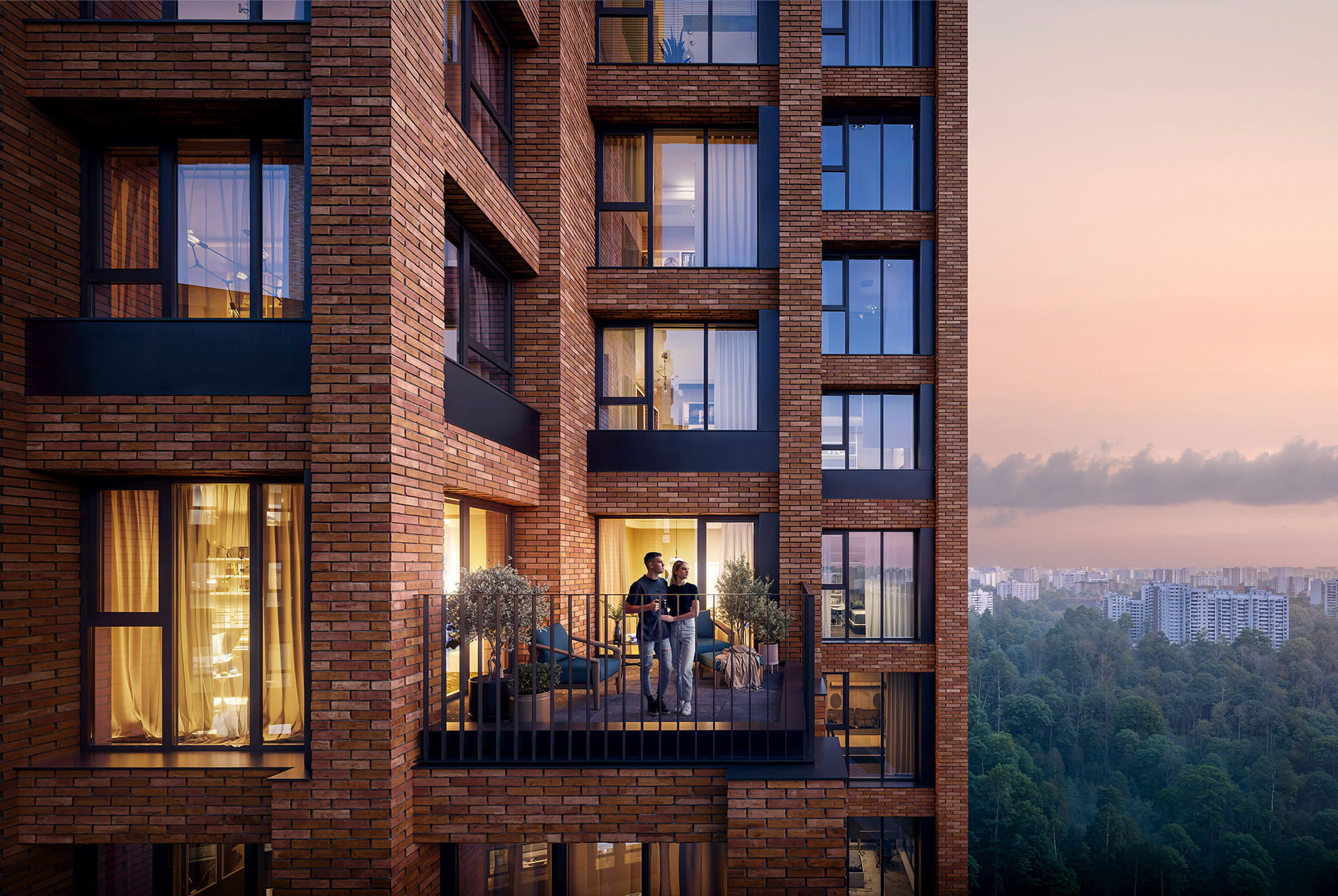 Благодаря продуманному остеклению все квартиры в проекте будут наполнены светом и уютом. Панорамные окна, окна в пол и угловые окна создадут впечатление простора. А виды на лес и реки станет неотъемлемой частью вашего интерьера.