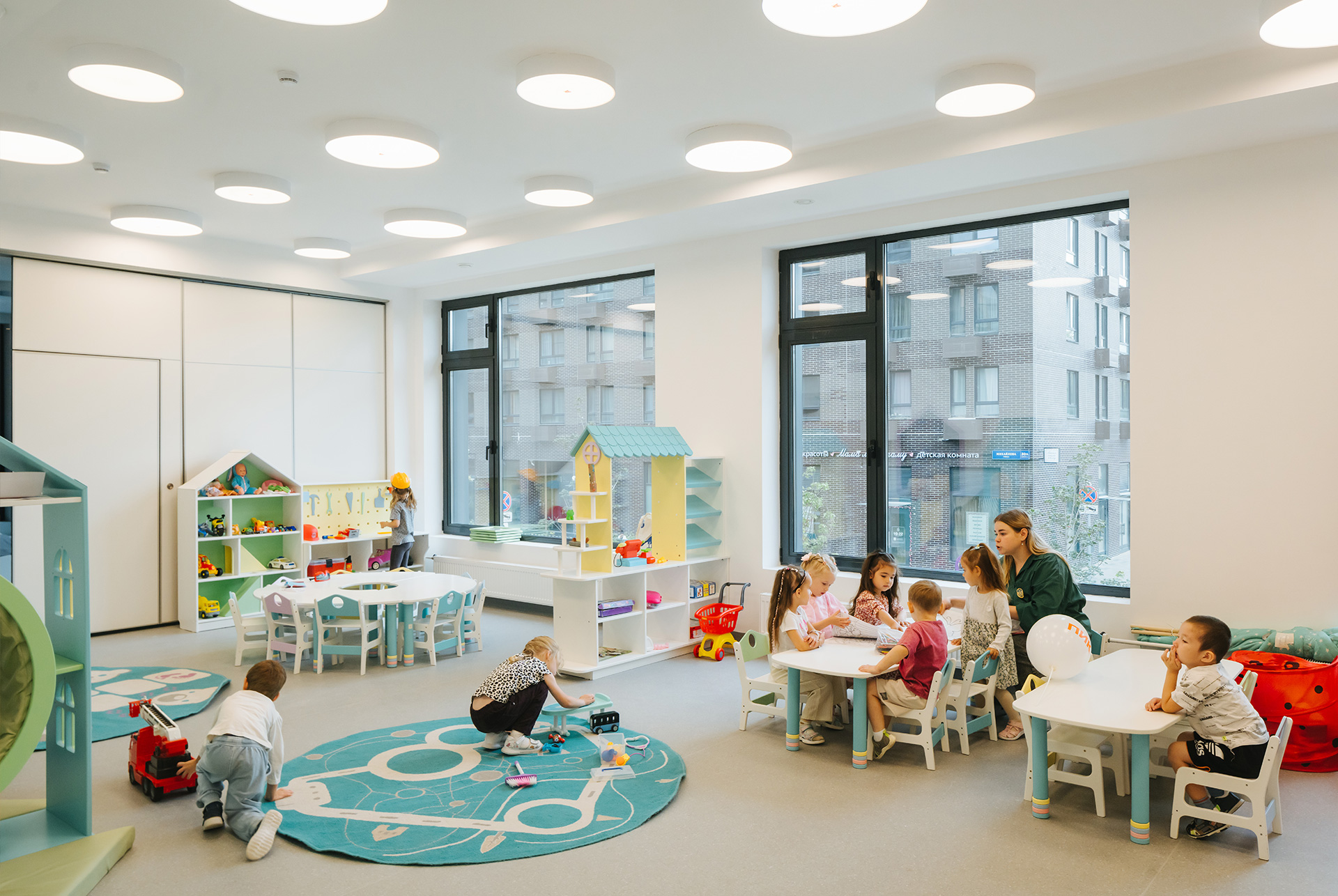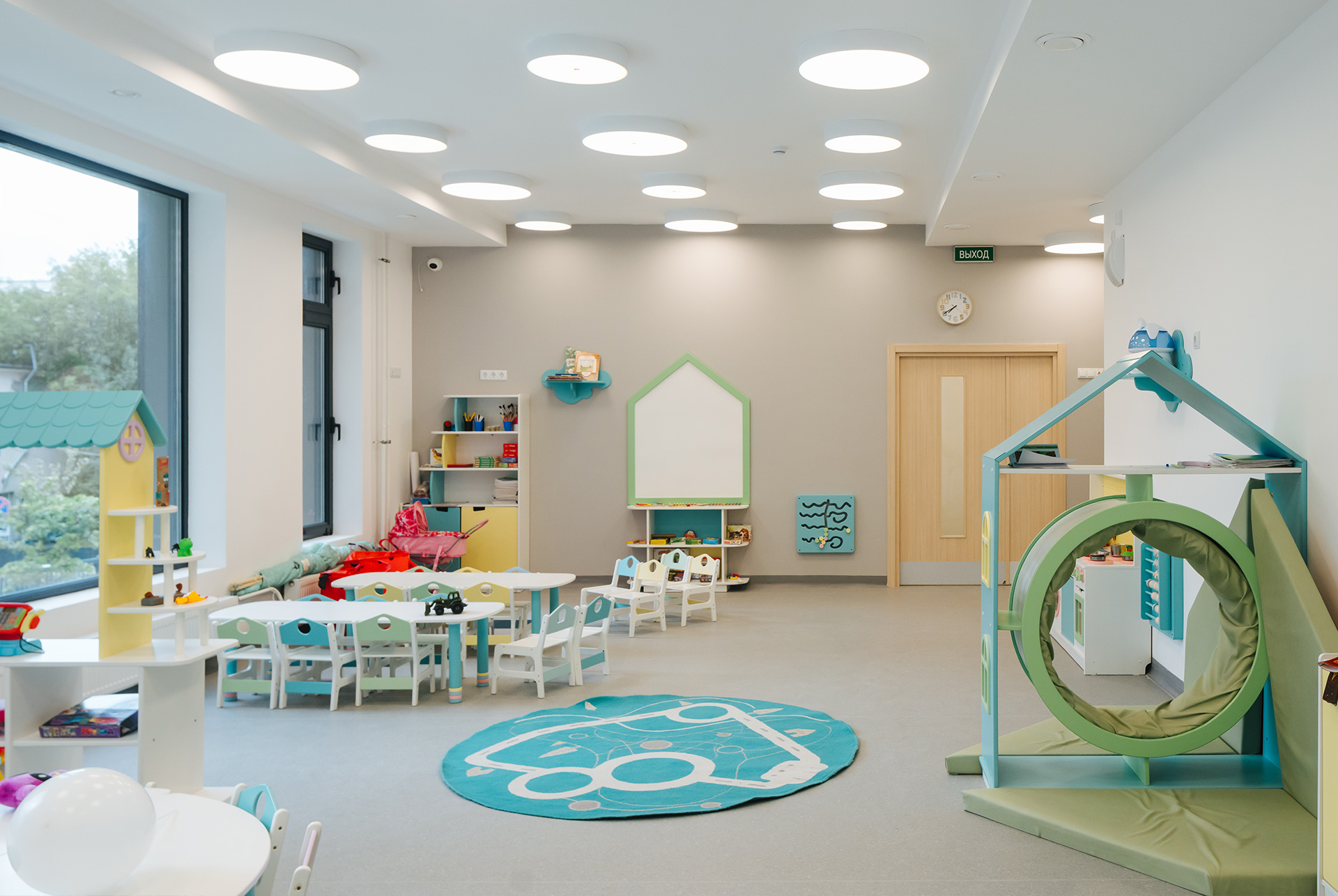 В новом детском саду просторные комнаты, удобные раздевалки и продуманные игровые пространства. Есть кабинет коррекционно-развивающих занятий и зонированные пространства, которые позволяют педагогам уделять внимание каждому ребёнку, учитывая его особенности и потребности.