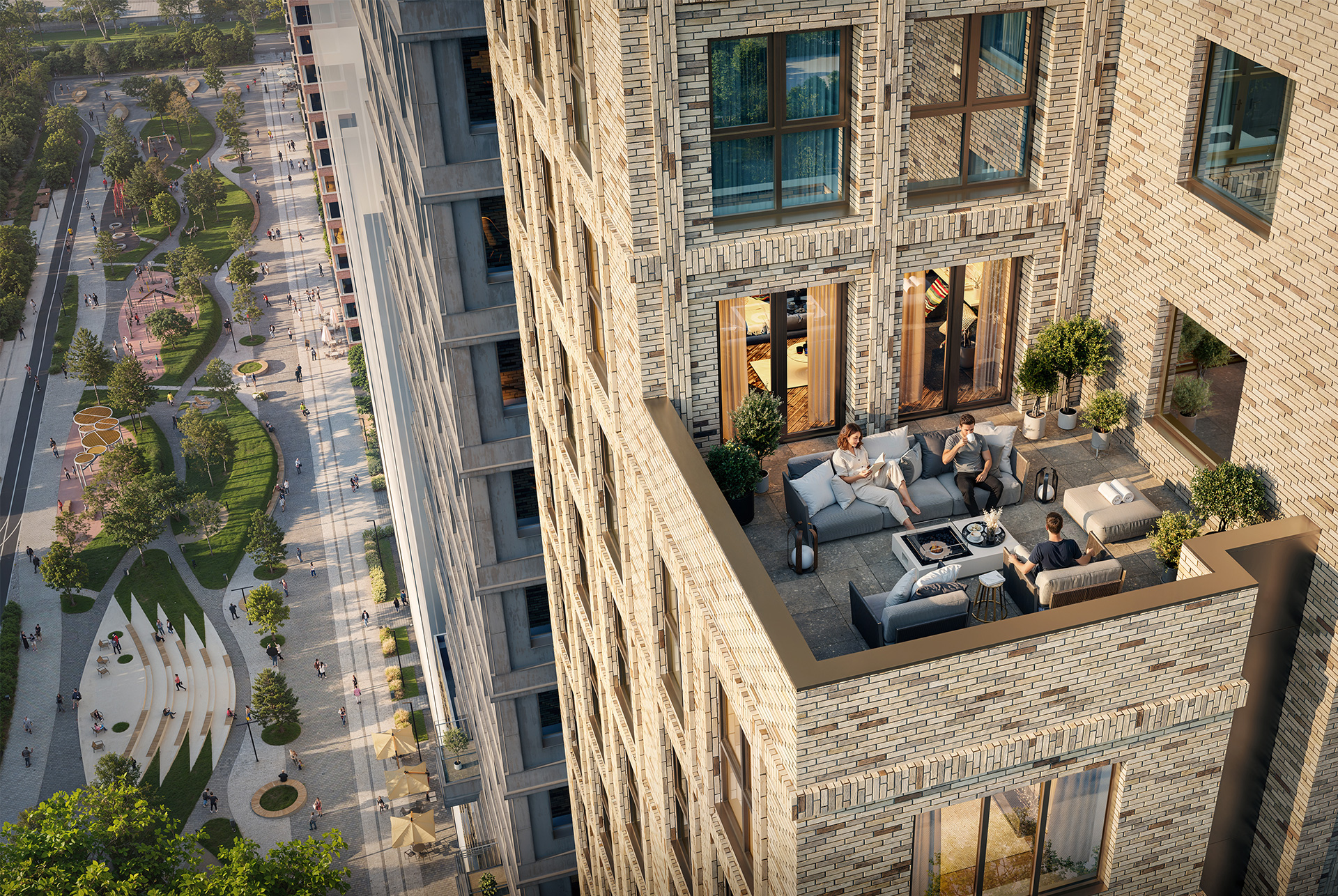 Через весь квартал протянется широкий пешеходный бульвар для спокойного и активного отдыха. Мы постоим игровые площадки для детей всех возрастов и спортивные площадки для занятий кроссфитом, паркуром, воркаутом и мини-волейболом. Ещё здесь появится амфитеатр и уютная приветственная площадь, где в тёплое время года будет приятно выпить кофе и отдохнуть, а зимой — любоваться новогодней ёлкой, которая создаст праздничное настроение.
