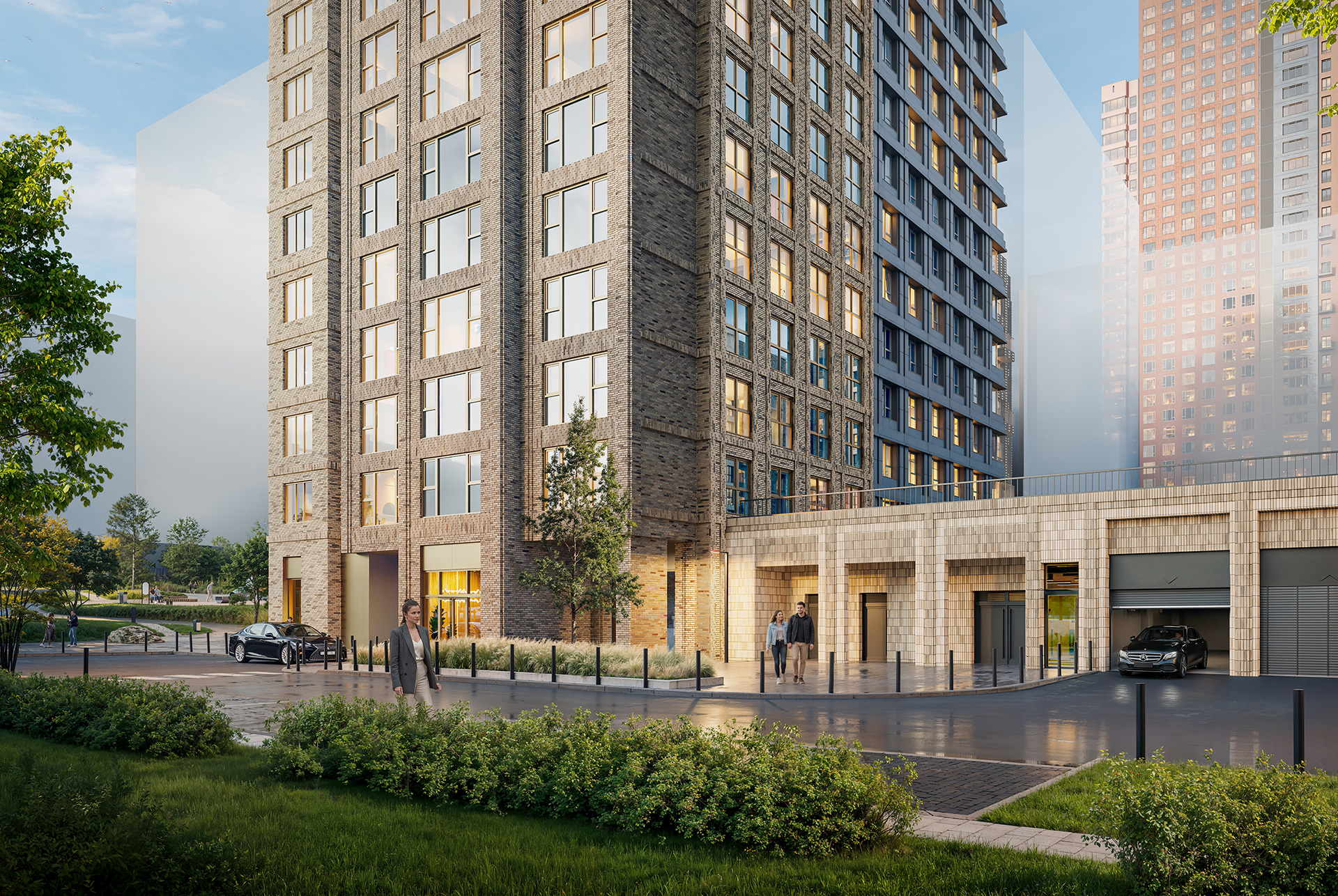 При входе в дом жителей встретят стильные лобби с дизайнерской отделкой. Попасть в них можно с двух сторон: с улицы и со двора. В лобби будет отдельная комната, где можно хранить коляски и велосипеды. Бесшумные скоростные лифты с комфортом доставят на любой этаж, включая подземный — здесь расположатся индивидуальные кладовые и паркинг.