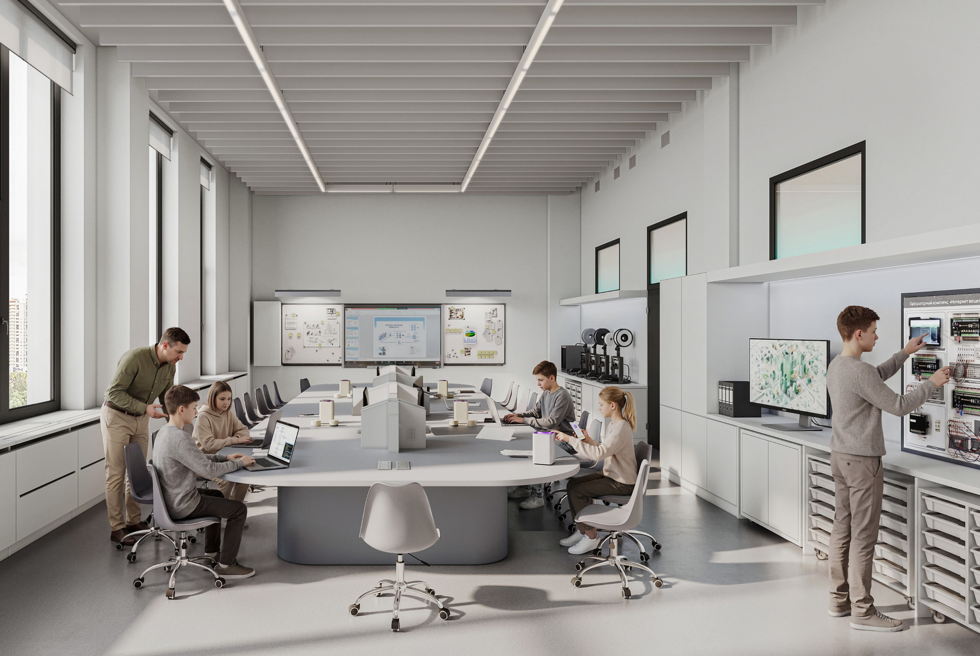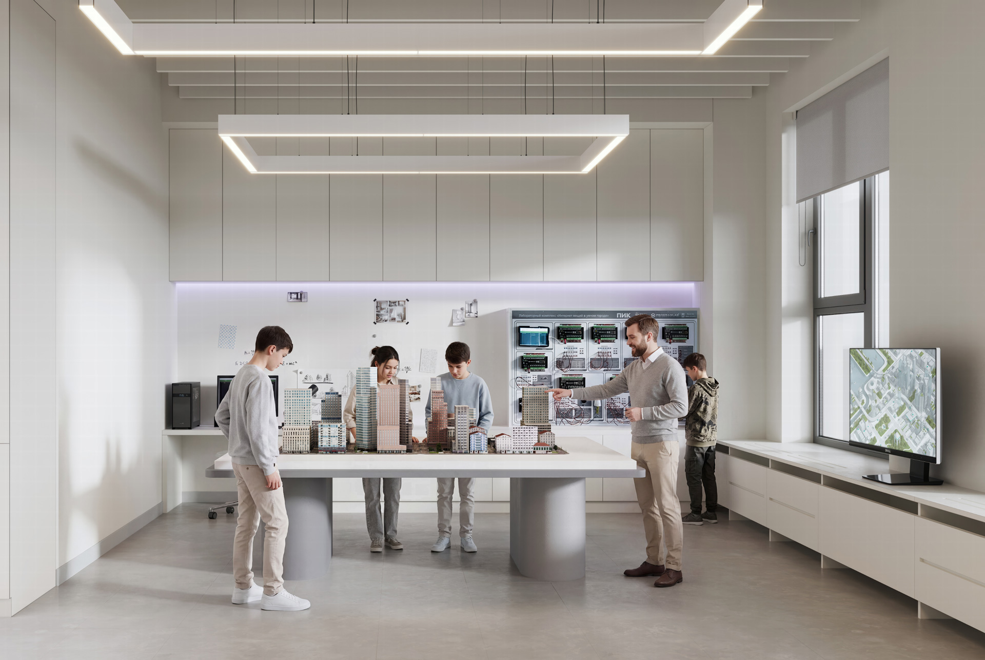 — Лаборатория как полигон возможностей. Занятия проходят в «Лаборатории ПИК» с макетами умного дома и умного города, а также их цифровым двойником для моделирования реальных сценариев.
