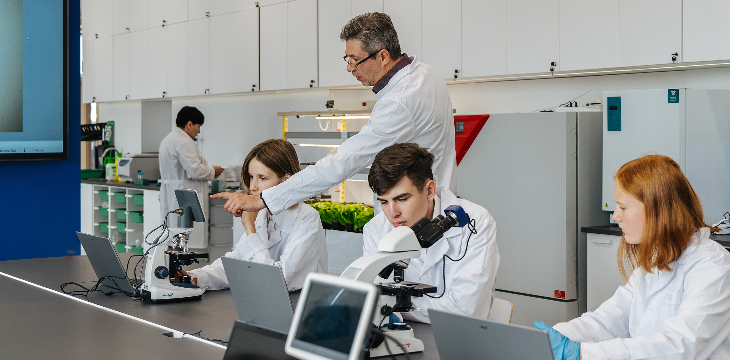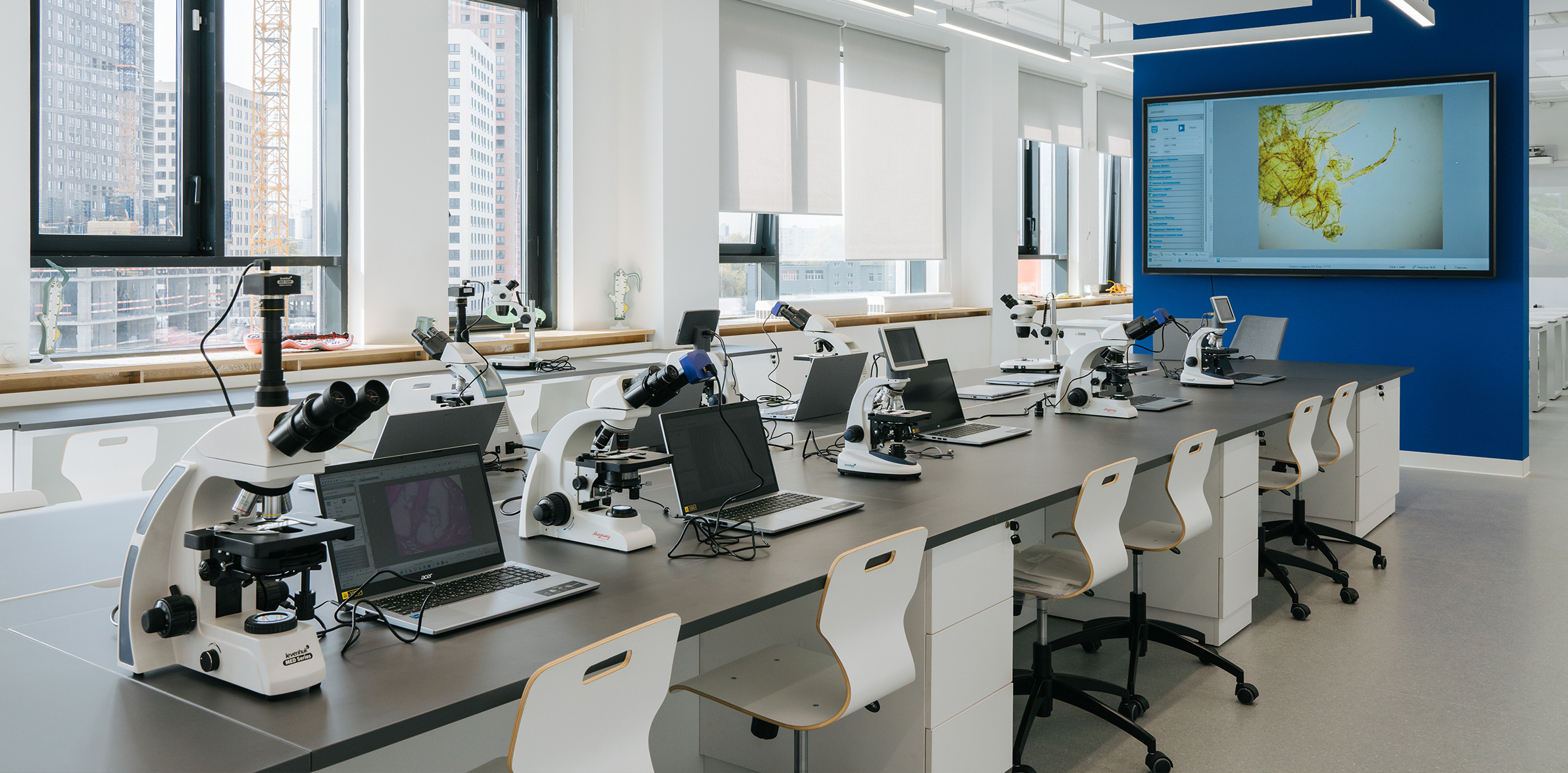 Для всестороннего развития учеников в здании есть всё необходимое: научные лаборатории, IT-полигон, робокласс, творческие мастерские, актовый зал, библиотека и медиатека.