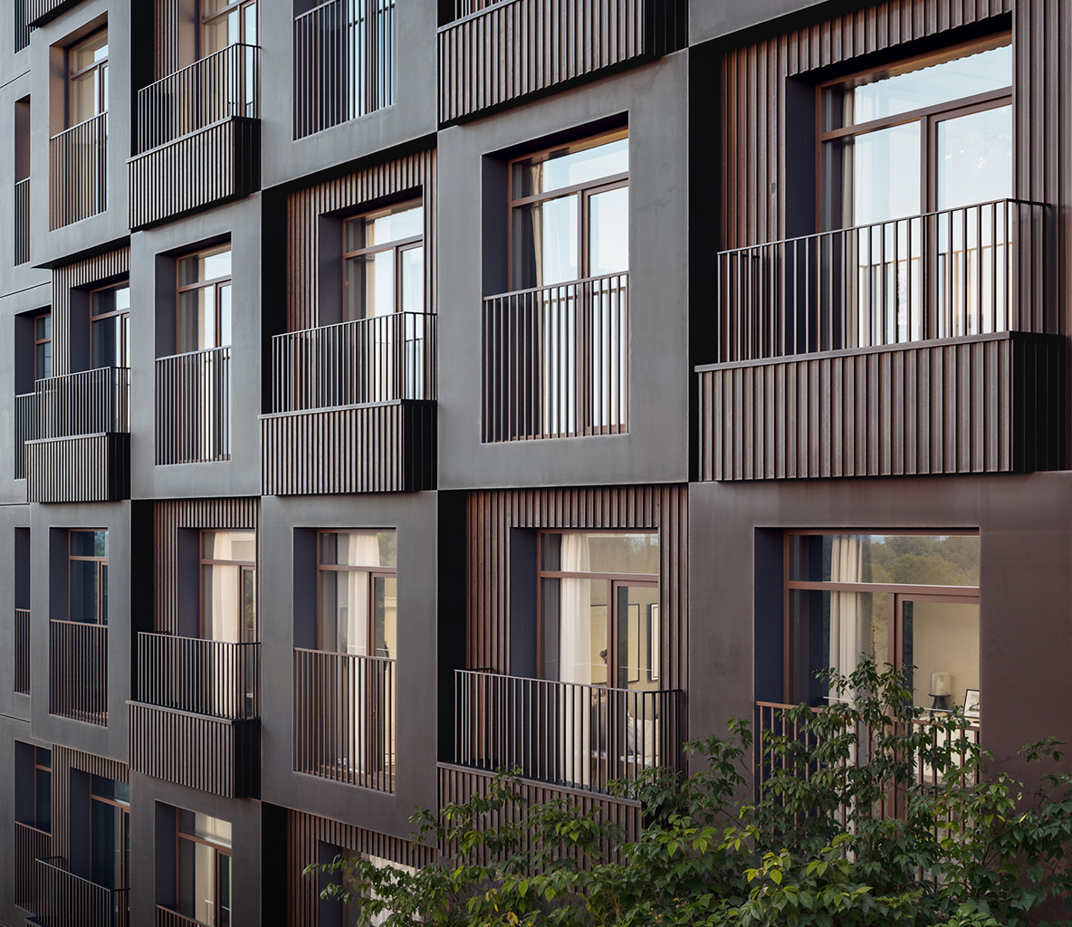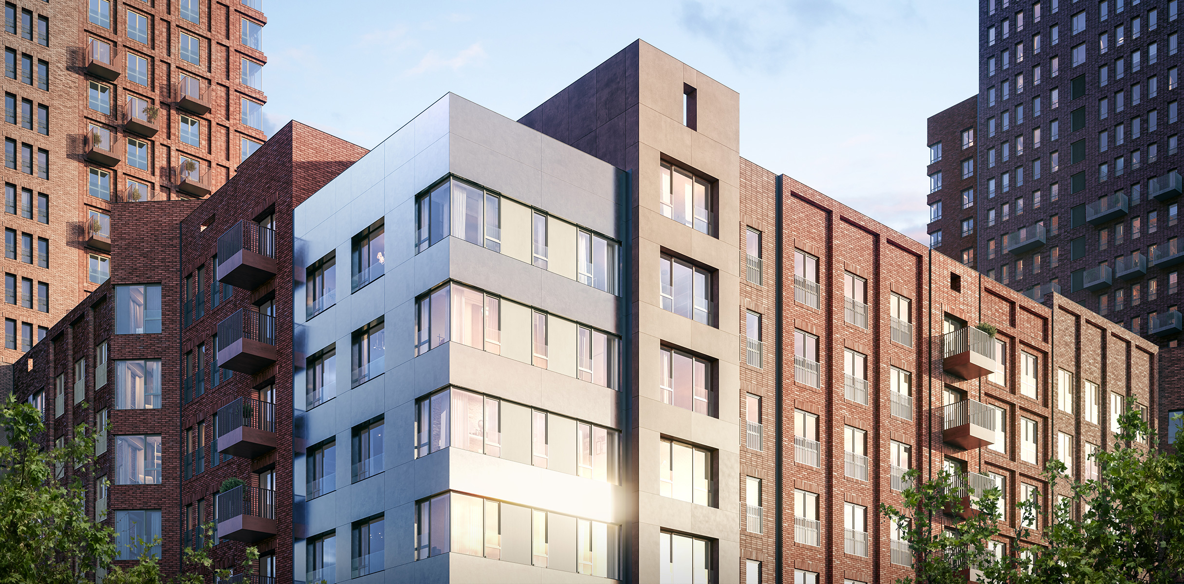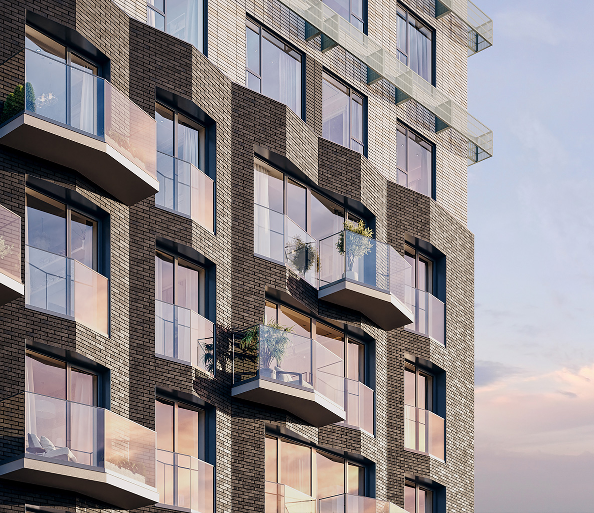 Сложная пластика силуэтов и уникальность зданий достигаются за счёт различных объёмных элементов: эркеров, металлических кассет, необычных балконов и отделочных материалов с выразительной фактурой. За счёт этого дома выглядят эффектно, а в квартирах появляются необычные и функциональные планировочные решения.