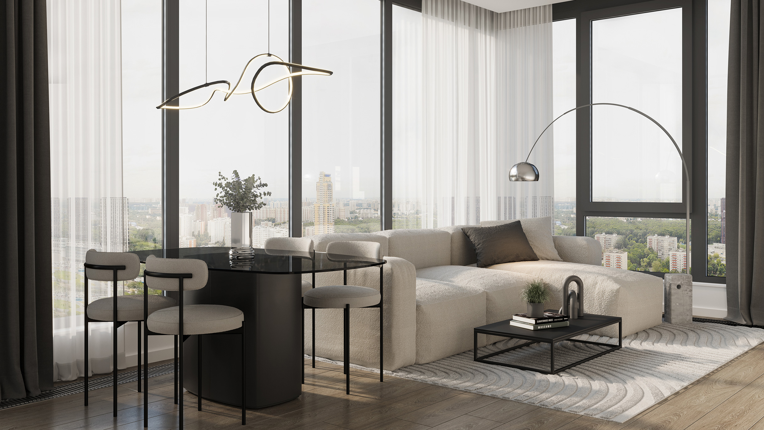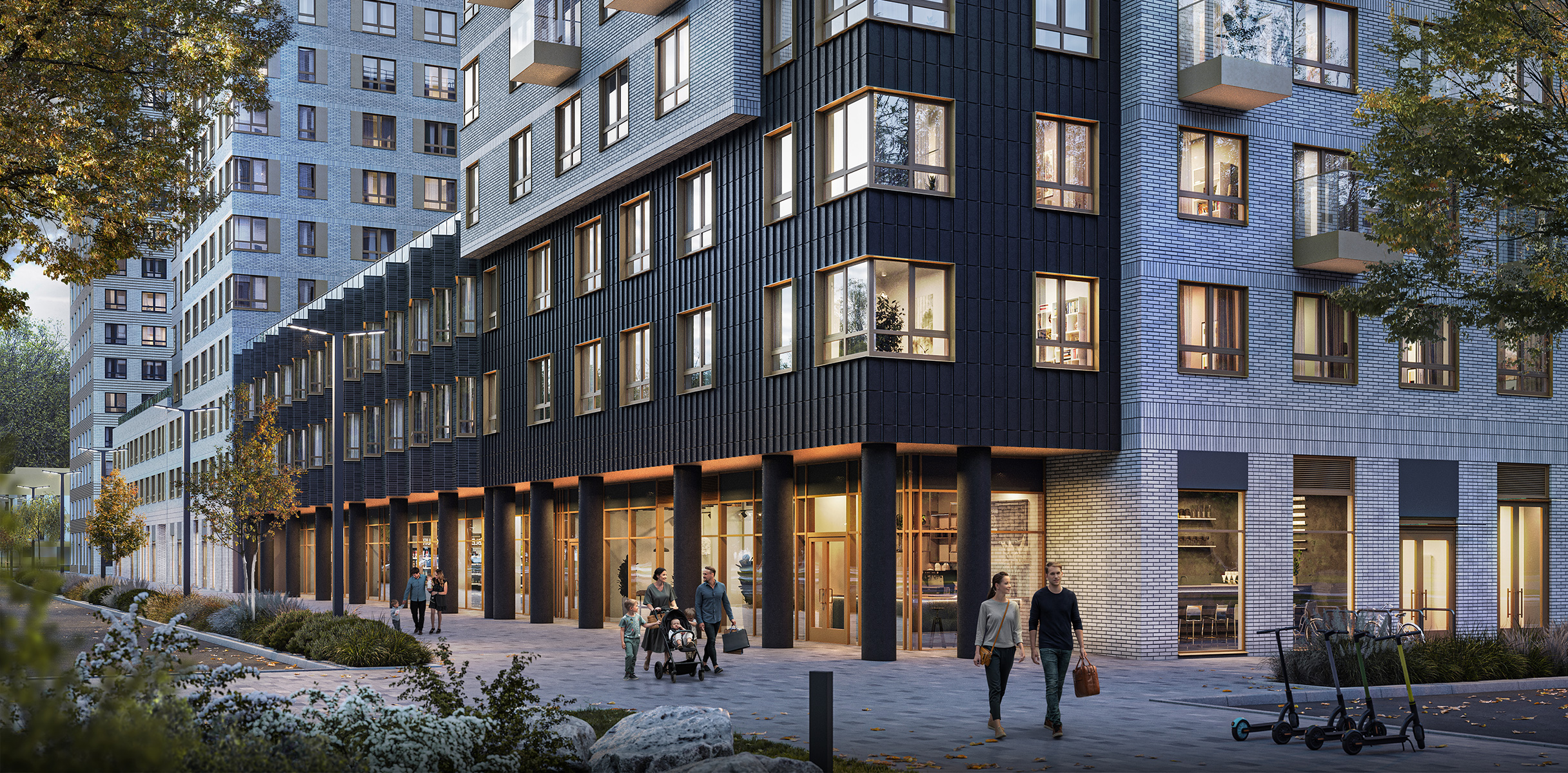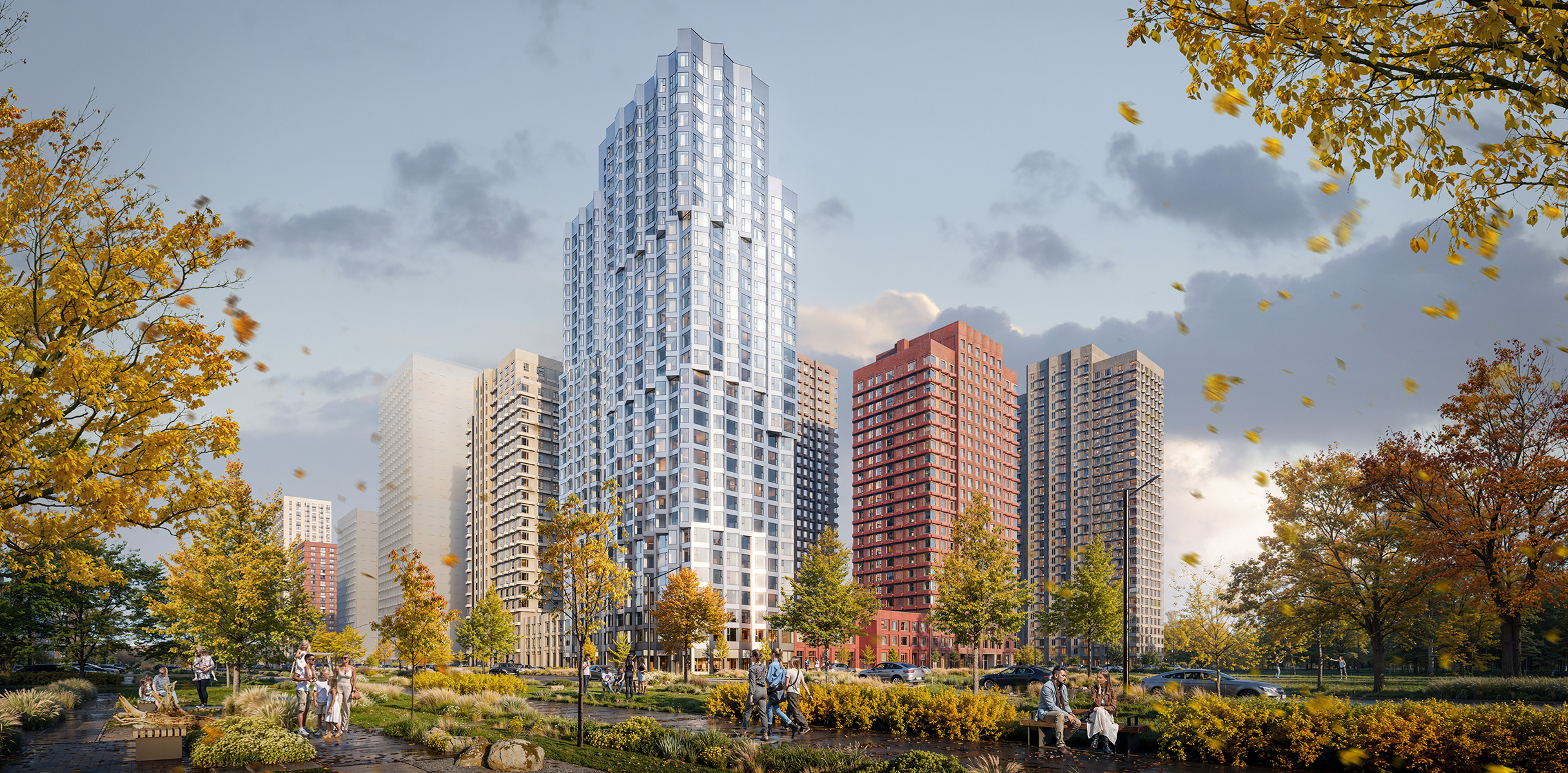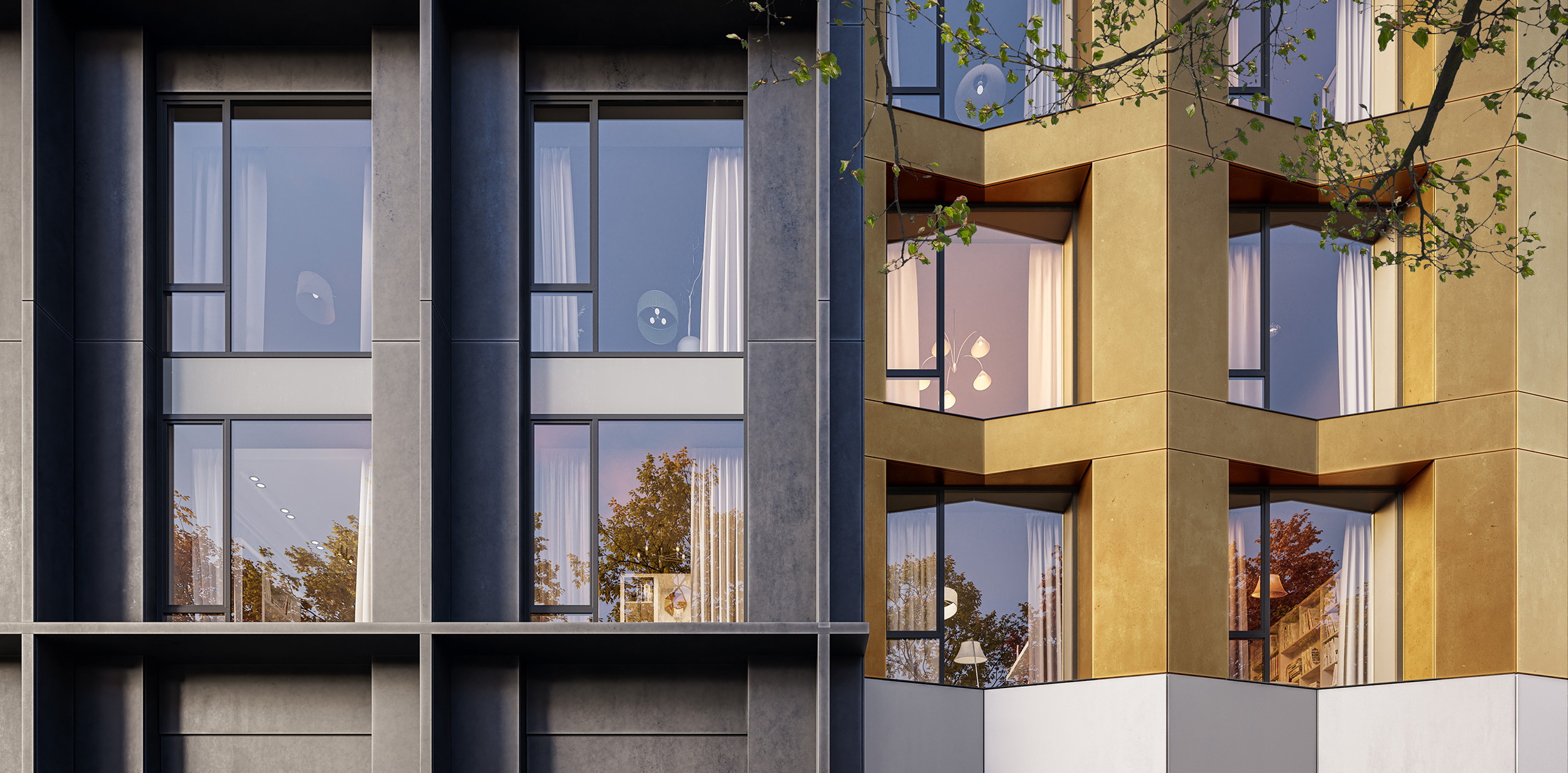 Сложная пластика силуэтов и уникальность зданий достигаются за счёт различных объёмных элементов: эркеров, металлических кассет, необычных балконов и отделочных материалов с выразительной фактурой. За счёт этого дома выглядят эффектно, а в квартирах появляются необычные и функциональные планировочные решения.