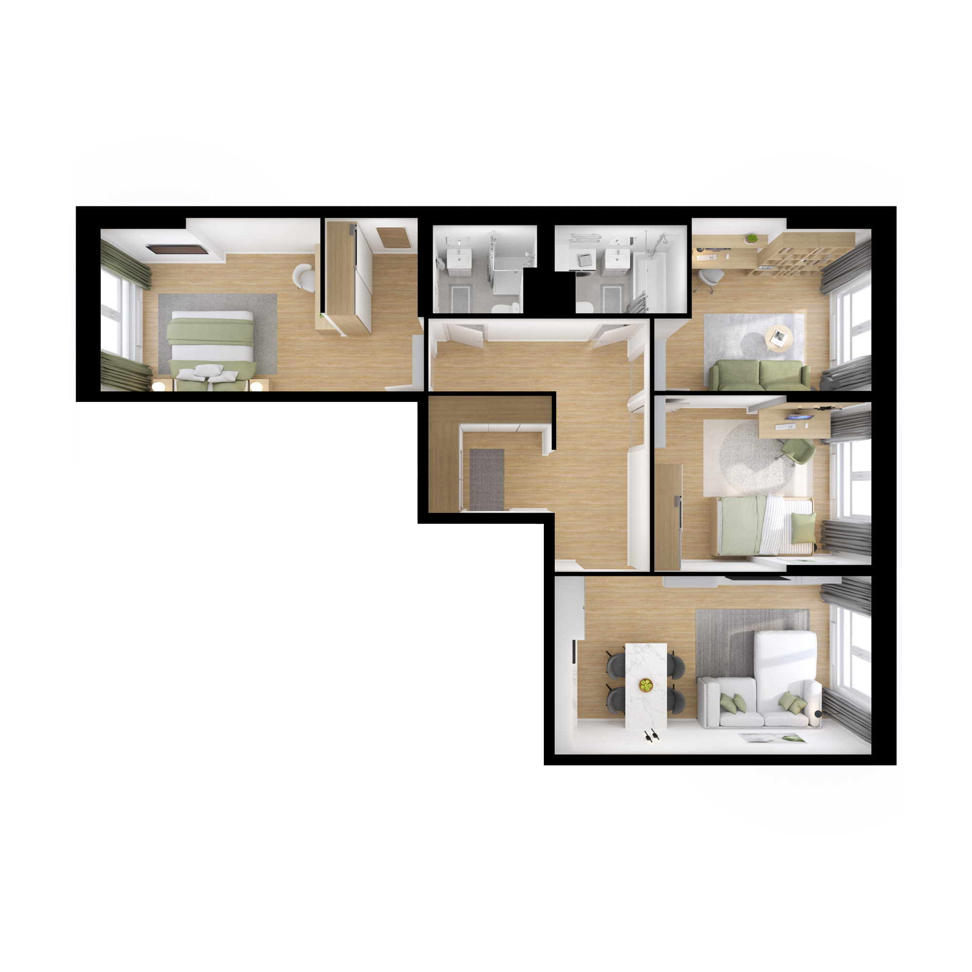 Квартиры с 2 санузлами и более