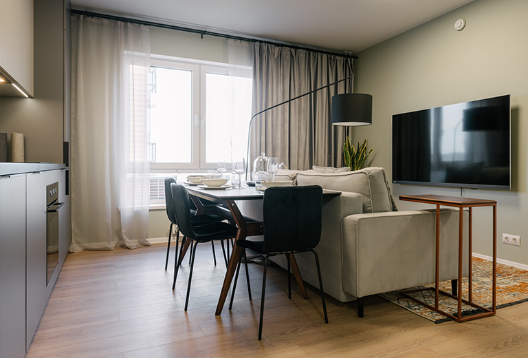 Покажем вам дворы, детские и спортивные площадки, квартиру с отделкой и мебелью.